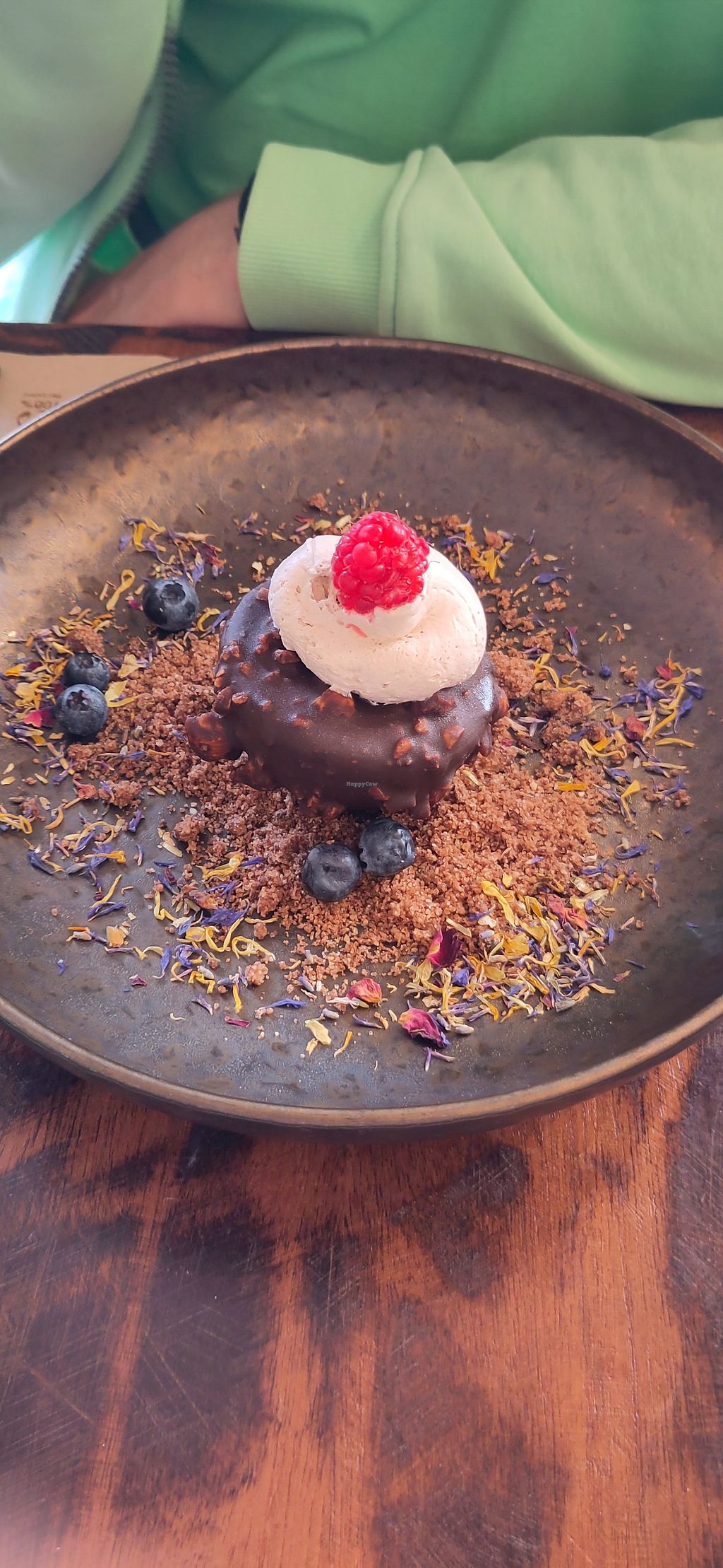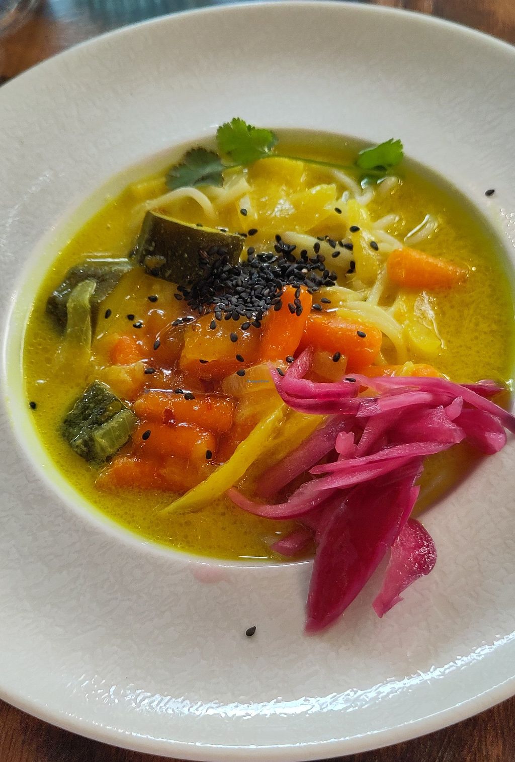 Read moreDas Essen war nicht besonders aber gut und lecker. Als Vorspeise gab es bei mir eine Pastinakencremesuppe mit Fenchelöl. Diese war super lecker. Dann kam ein Seitansteak mit Püree von Kartoffel und Rote Beete. Das war auch gut:) Desset Mango mit Lotuscrumble.