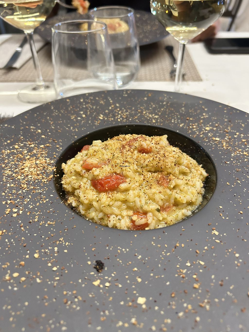 Calamarata su macco di ceci con pomodorini giallo e salicornia