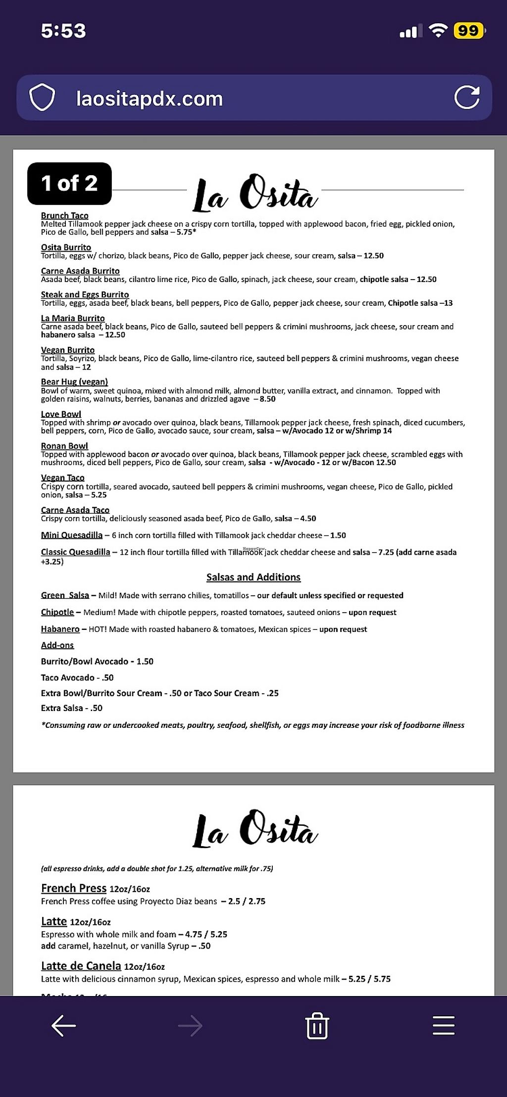 La Osita’s vegan burrito is a reliable and delicious option. I love that they have soy chorizo and vegan cheese instead of just having to omit ingredients to make it vegan. They also have really good smoothies and the breakfast quinoa bowl is a 10/10. Their staff is always kind and helpful. I highly recommend La Osita!