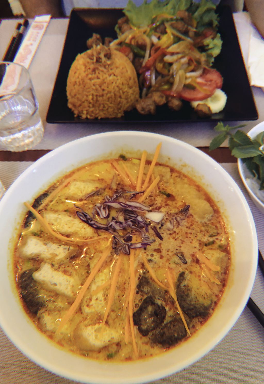 Lumpia (stuffed with bamboo, smoked tofu and leek) and samosa (stuffed…