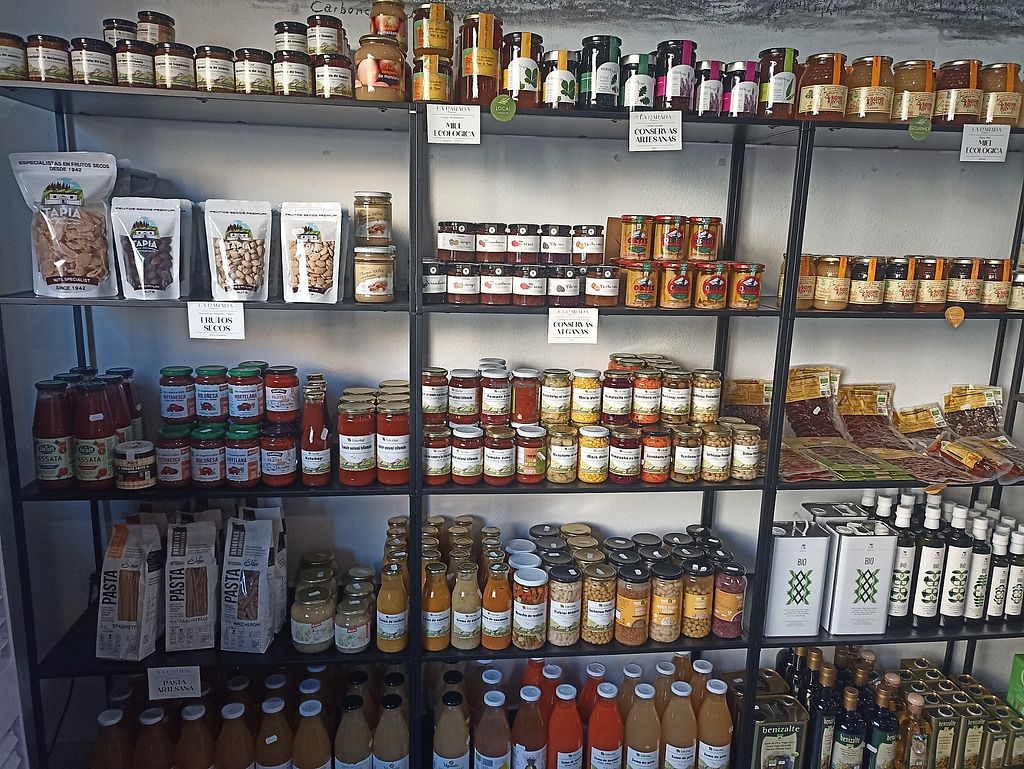 Aceptaron mi petición de traer embutidos de Avus y es la única tienda donde he encontrado mantequilla vegana. Teniendo en cuenta que es una tienda de pueblo, tienen bastante variedad de productos veganos.