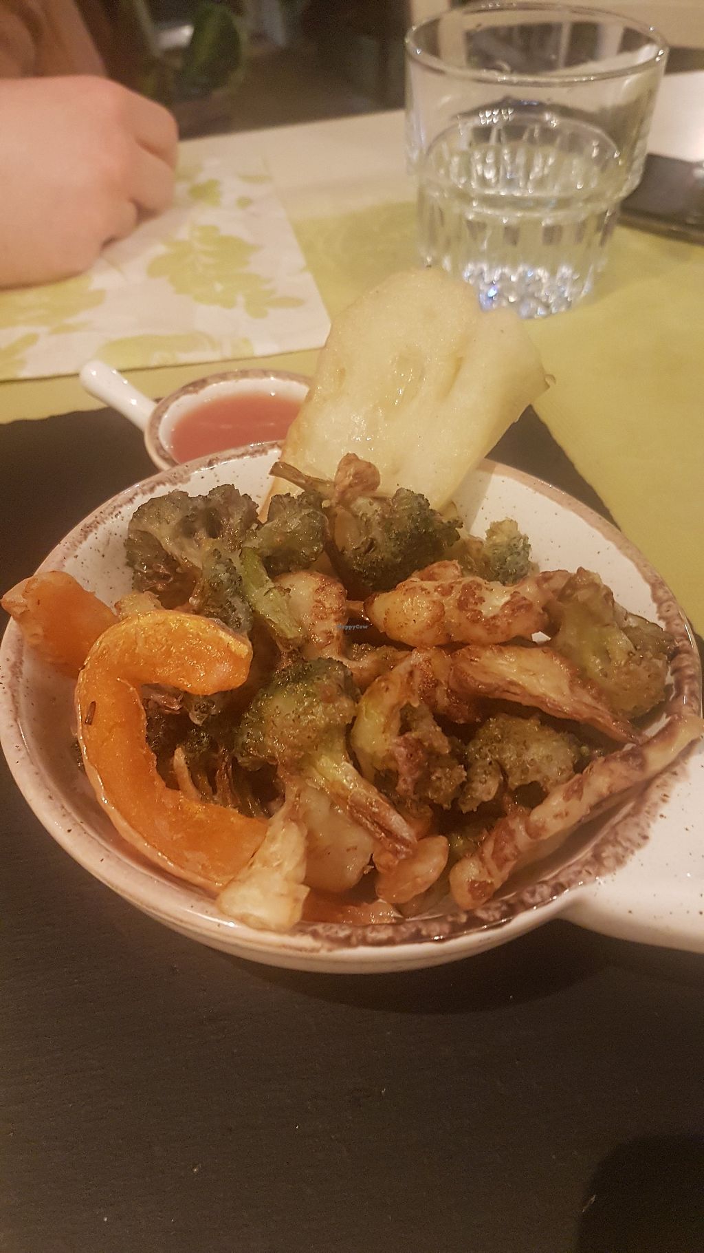 Bocca di rosa vegana and Jackfruit meatballs and mixed fried vegetable…