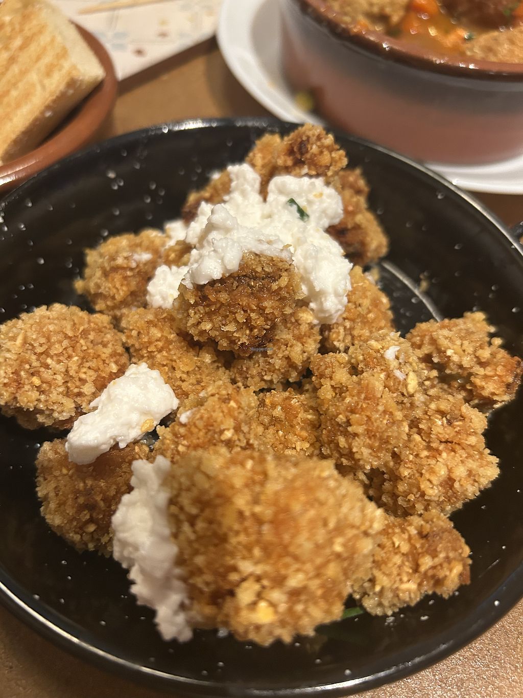 This spot offers vegan tapas, which we ordered in abundance and shared, of course. My favorite was the cauliflower popcorn—super tasty. They even serve a vegan version of Spanish omelette, which I found pretty interesting. As well as the kimchi fries.