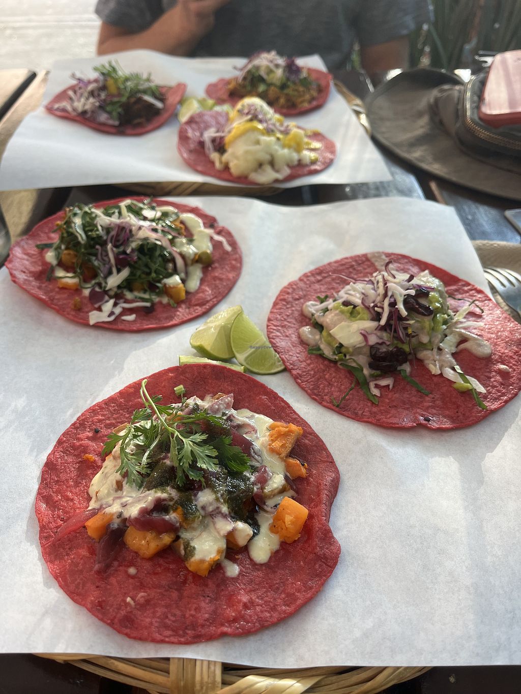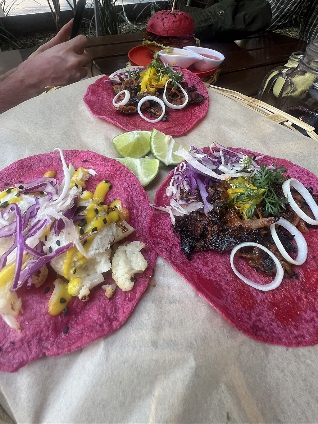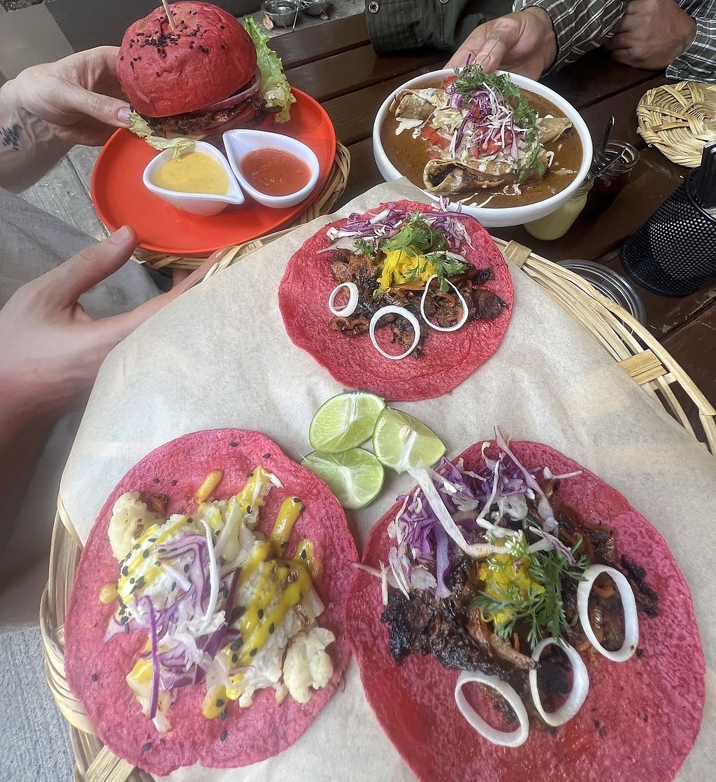 Tacos trio (clockwise starting at the top: tofu, mushroom pastor and s…