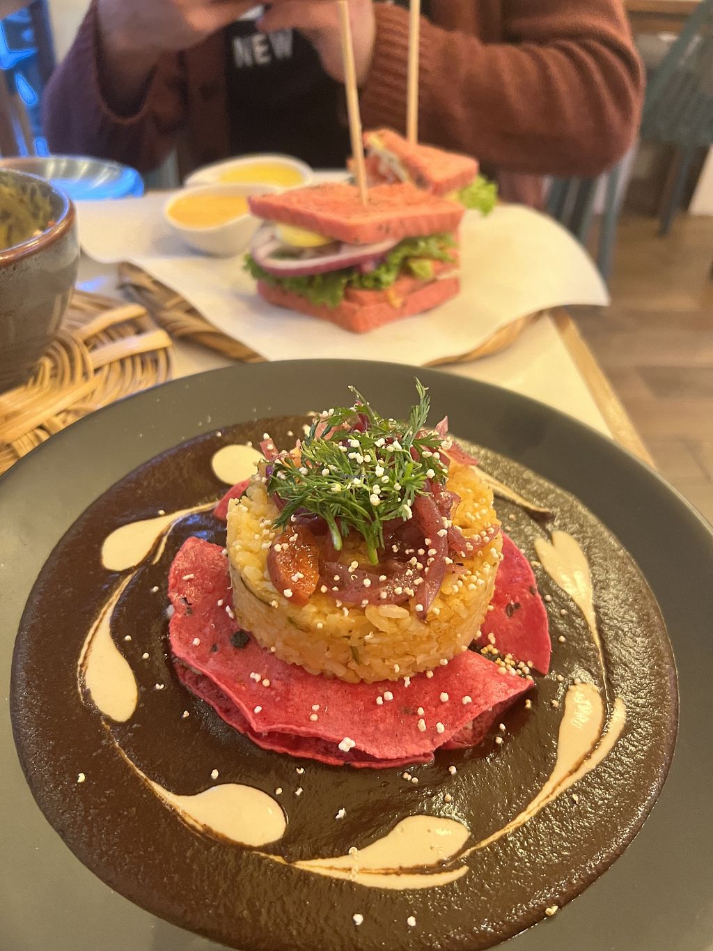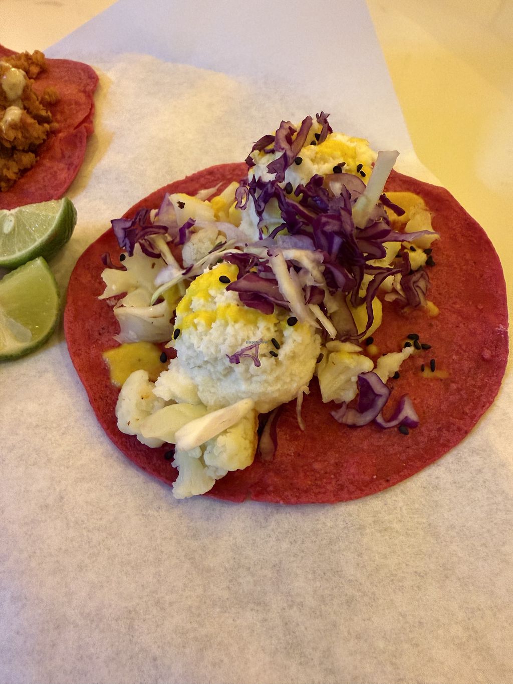 Crudi (bottom left), Camote Al Pesto (top center), Couliflor Con Reque…