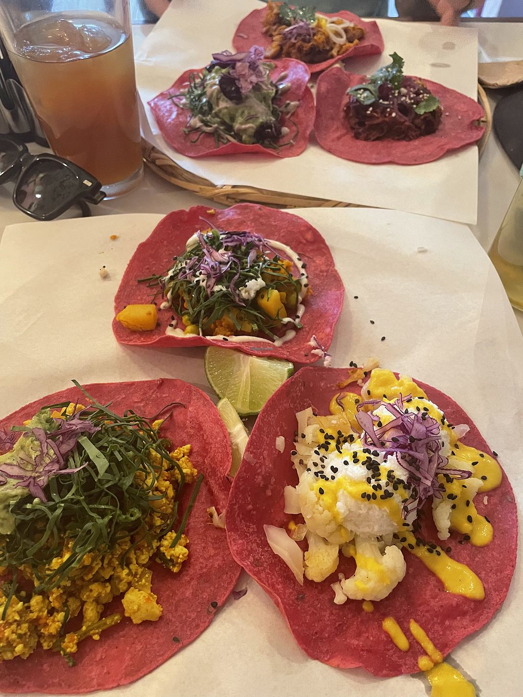 Coliflor con requesón, papas al curry and Jamaica pibil