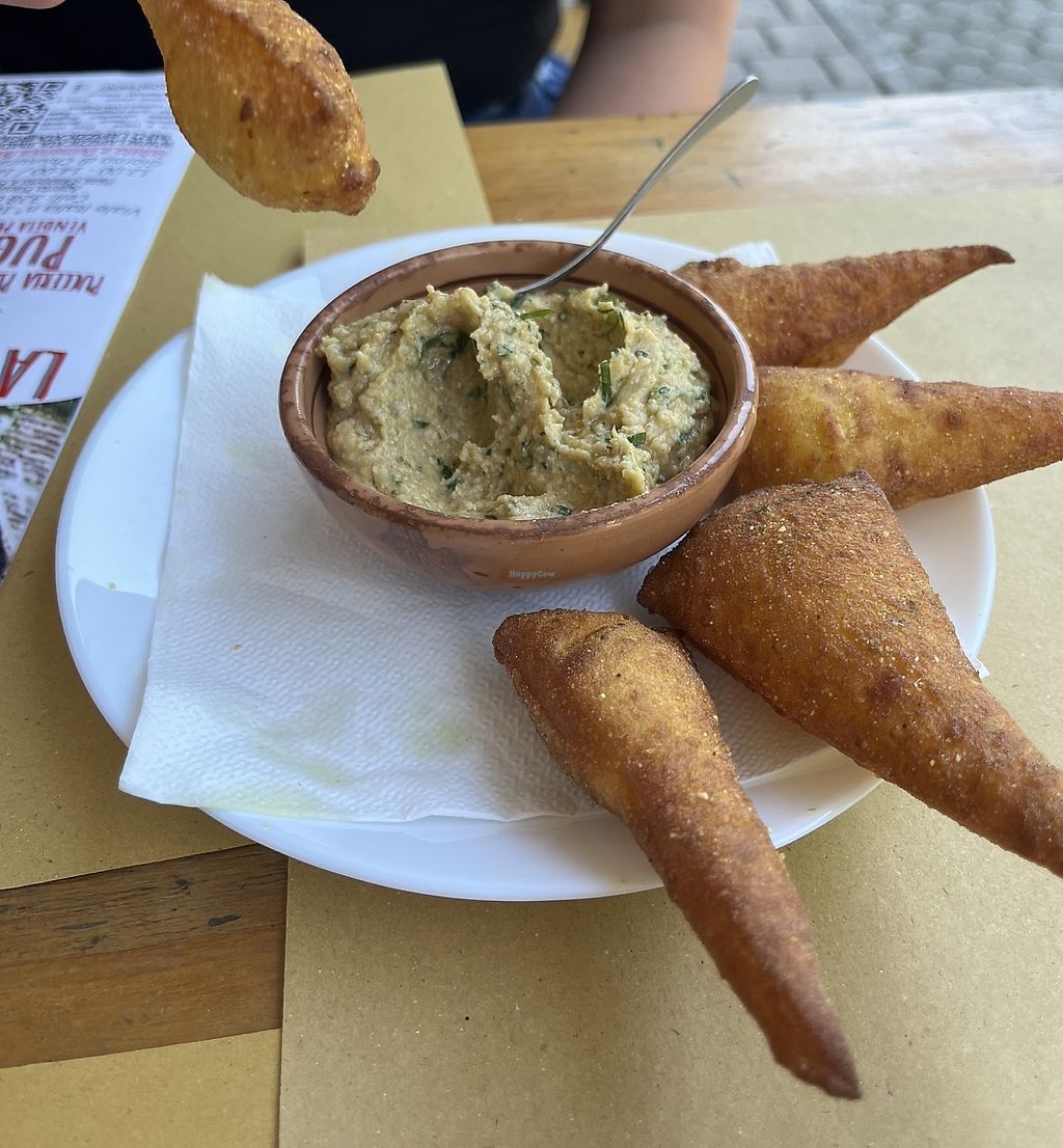 Small place that serves pizza, puccia (large sandwiches) pasta, and typical Apulian specialties. They have a dedicated vegan menu for Pizza and Puccia but also much more! They have vegan first courses (orecchiette with turnip tops, with aubergine and caper sauce, tomato and basil, etc.) and a wide selection of vegetables in oil, stewed, sautéed, grilled. In addition to some specialties that I recommend such as broad bean cream with chicory. Very "easy" place with self-service. But very low prices and very high quality! The managers are very helpful, ask and they will do everything to please you!