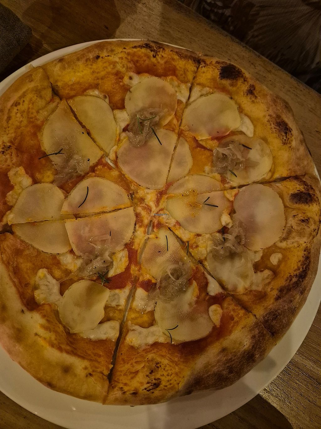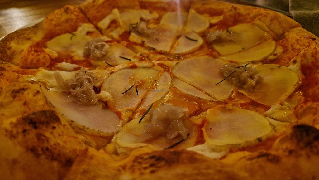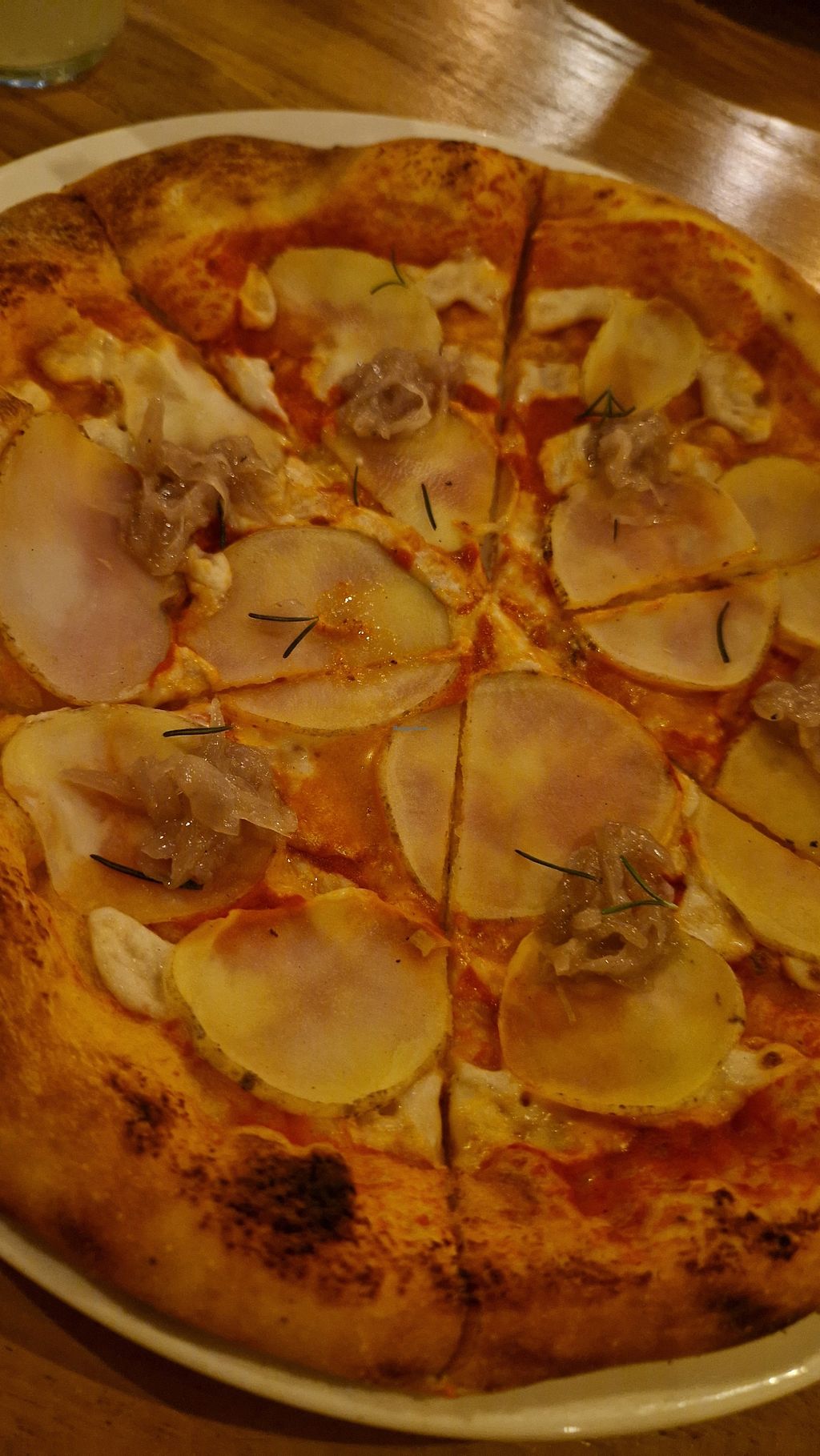 They have several pizza options which can be made vegan, by swapping dairy for vegan cheese such as margerita, mushroom and potato. They were all really good with fresh ingredients and a great base and crust. On the pricier side. Only improvement would be mock meats.