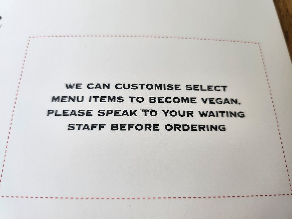 Serves meat, vegan options available. Italian restaurant offering a vegan section on the menu with salads, pastas, pizzas, and starters. Open Mon-Fri 11:30am-9:00pm, Sat-Sun 11:30am-9:30pm.