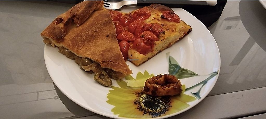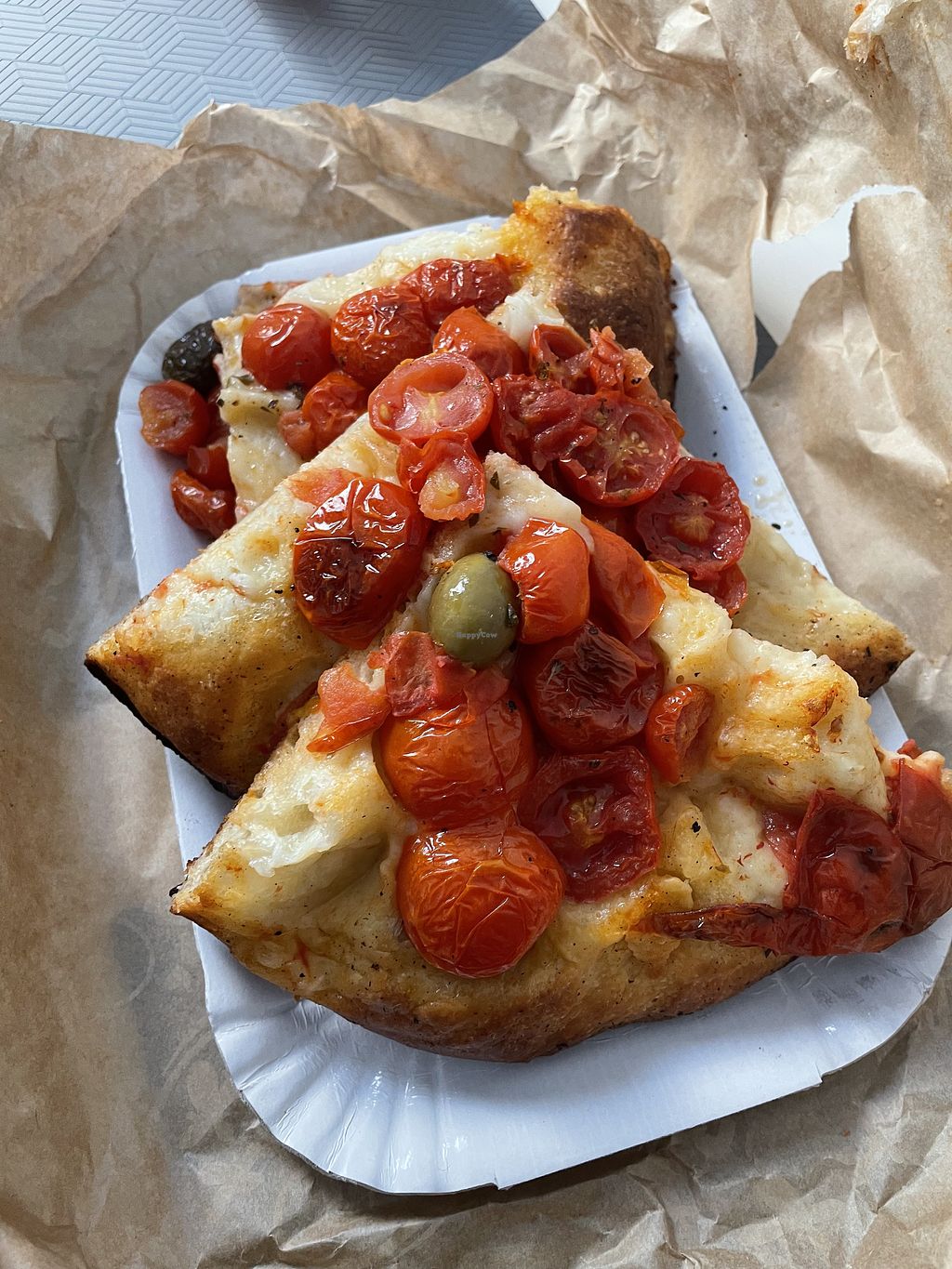 I love focaccia and this one did not disappoint! Also had a slice of something stuffed with onions and olives that turned out to be vegan & was very nice. Great place for quick takeaway.