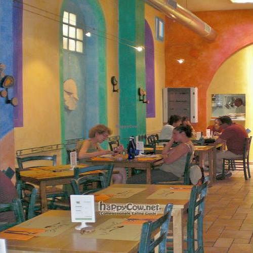 I often come here for lunch, and I've always had a good meal! The menu is always imaginative with seasonal vegetables and everything is very tasty. My favorite dish is "scaloppine di seitan" with a choice of other 3 or 4 samplings from the menu. The only thing that I can't raccomend to you is the miso soup, because it is completely tasteless (like hot water!). You enter the restaurant through a little shop that sells a variety of vegetarian products very interesting and tempting, and some ecologically-based cleaning supplies, but unfortunately the prices in the shop are rather high. The dining room of the restaurant is really colorfull and nice. There are many tables even if the room is not very big. You can find some interesting books about vegetarian culture and other similar subjects to read while waiting to be served, but you won't wait for a long time. Service is very good. They are fast and very nice. I always take my dog with me and they love her! Prices are in the average of this kind of restaurants and this city (wich is not cheap). Portions are generous. Sometimes they give lessons in vegetarian cooking. I'd just like to mention something: usually Italian vegetarian restaurants have a "country" look, which is nice but I hope they will understand that they could be elegant too, as they are in many other european cities.