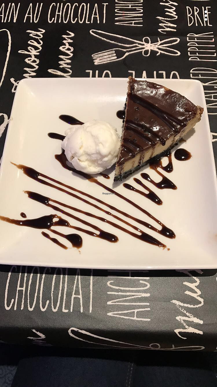 The restaurant has very decent sized vegan menu, plant milk, ice cream and cakes are also available. It's a tapas style place, has a fantastic value deal for three tapas which won't leave you hungry and it really is delicious. Complimentary bread and olives and a jug of fruity water are a lovely touch. Atmosphere is friendly, I met the owner, she always makes us feel welcome.