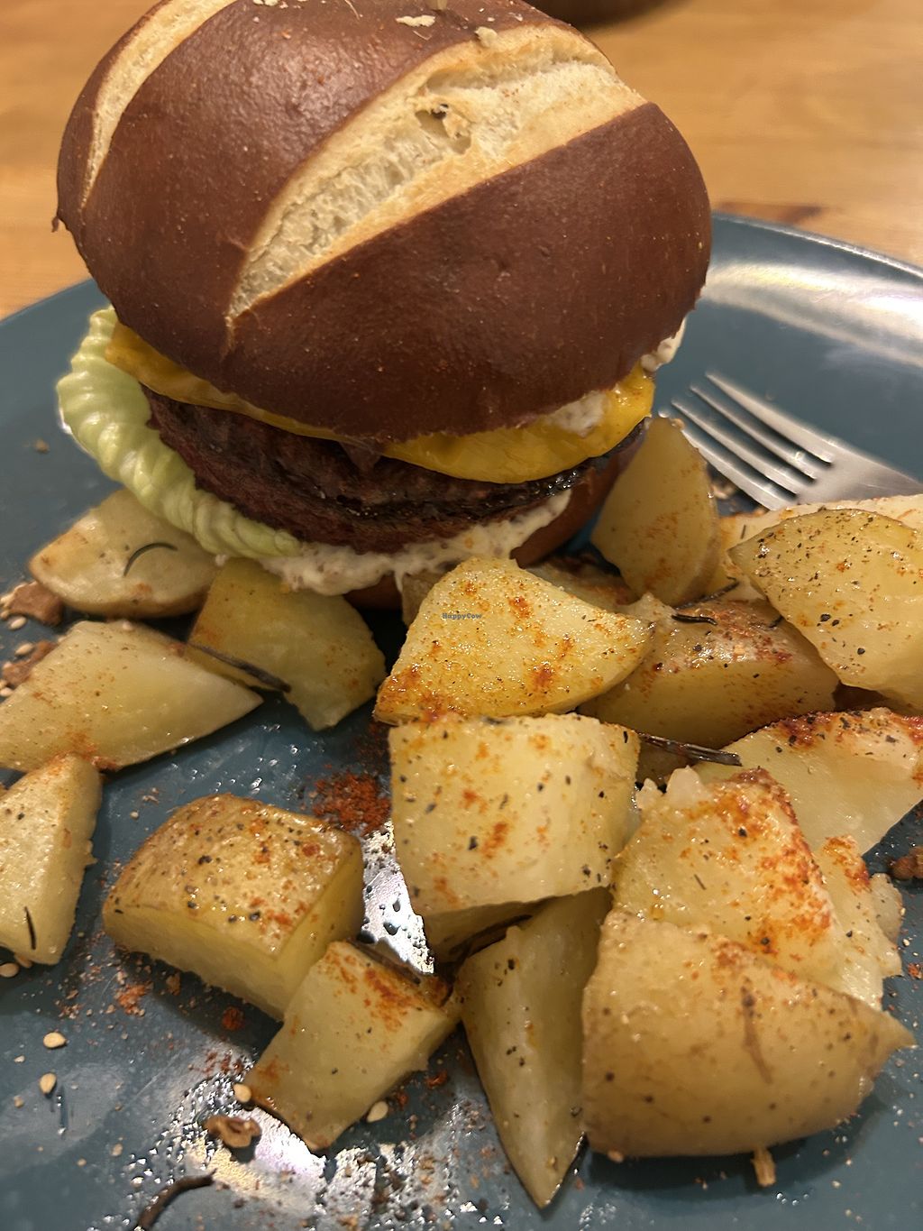 Wir haben leckere vegane Burger für 7€ gegessen. Wir wurden zwar nicht ganz satt davon, aber das Ambiente ist schön und das Essen lecker.