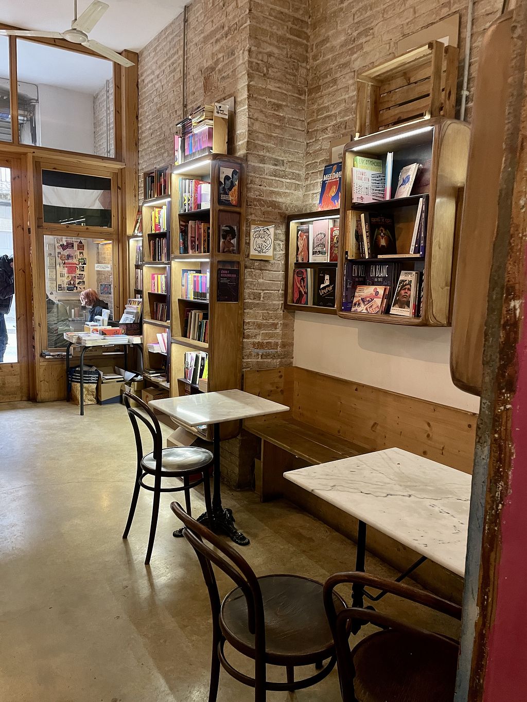Great vegan food, amazing books selection and delicious coffee & deserts 🖤 super nice and polite staff! Also, location is super privileged, nearby the Mnac. Definitely coming back next time!
