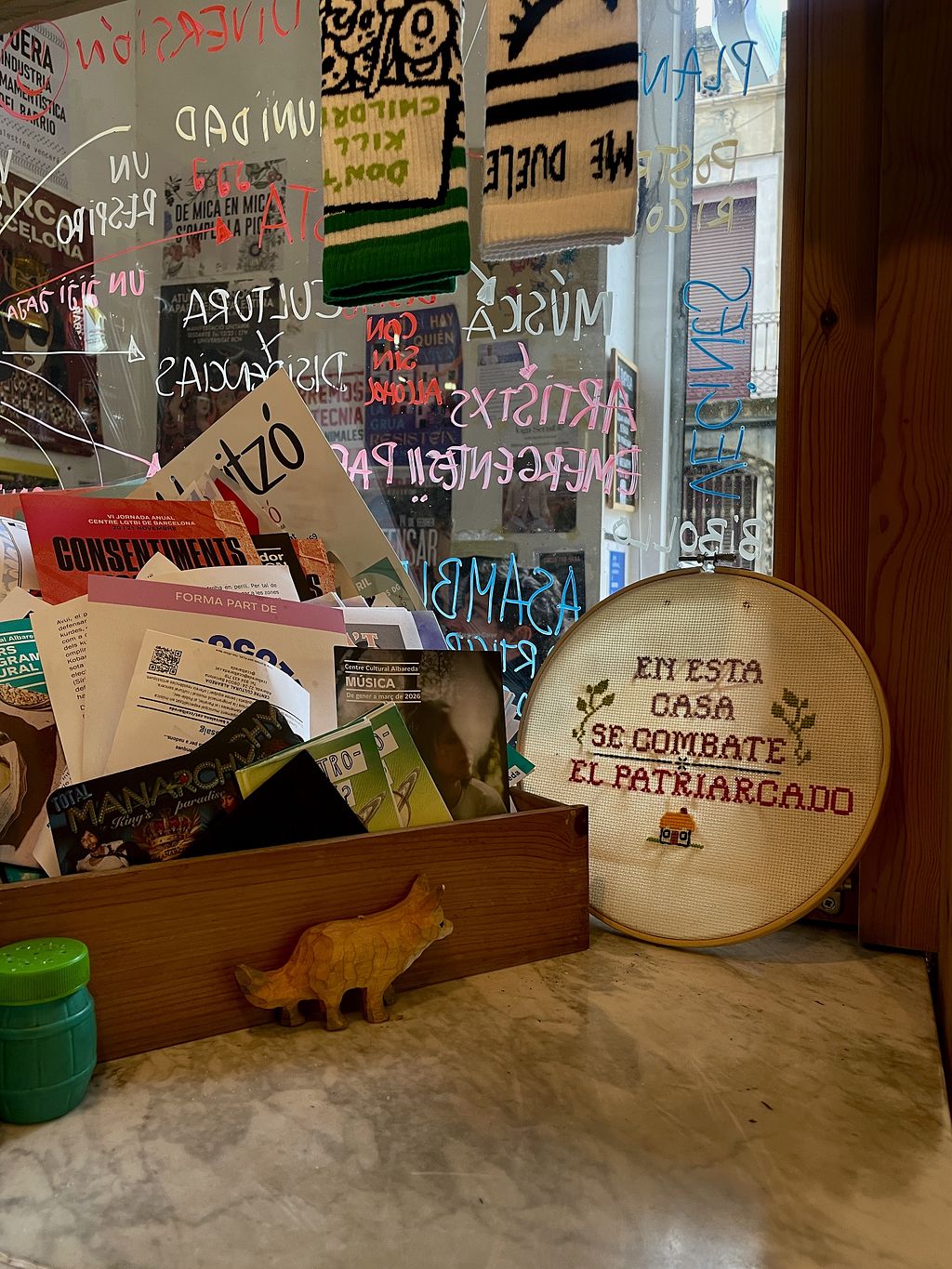 El mejor local para ir a tomar algo. Hay menú económico entre semana y platos currados el fin de semana a buen precio, las raciones están muy bien. Las patatas bravas o con alioli son una delicia. No tienen refrescos de grandes multinacionales (de agradecer). También hay sodas y opciones sin alcohol. Tienen una terraza y salón interior. La selección en la librería se centra en feminismo, género, política, veganismo entre otros. Organizan actividades variadas y son un núcleo cultural. Son muy amables y fan barri. Me encanta La Raposa.
