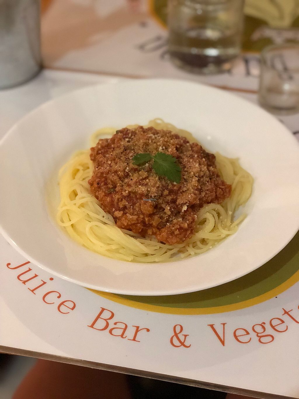 Spaghetti boloñesa con parmesano vegano