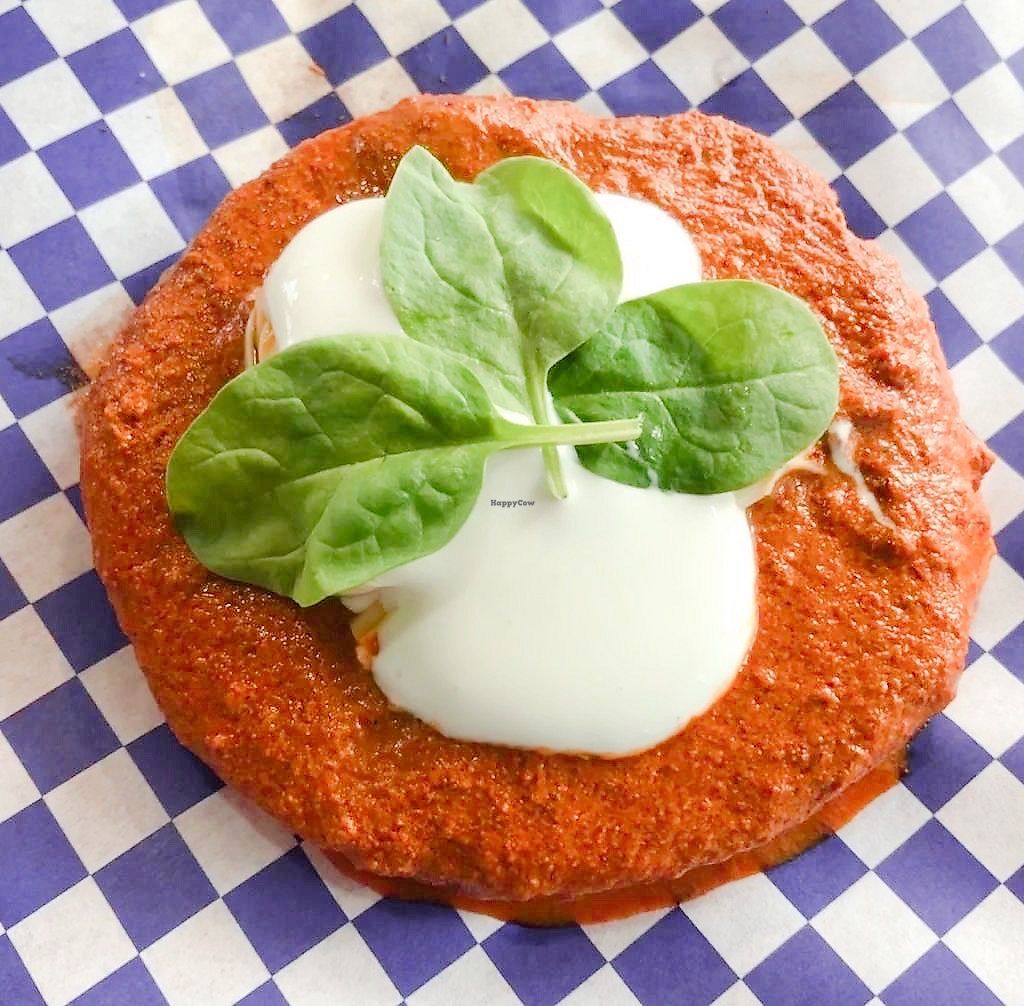 Most options are vegan. Includes waffles, muffins and pizzas. All drinks are based on vegetable milk. Includes chai, choco chai, organic coffee and de-caf coffee. Reported closed August 2023.