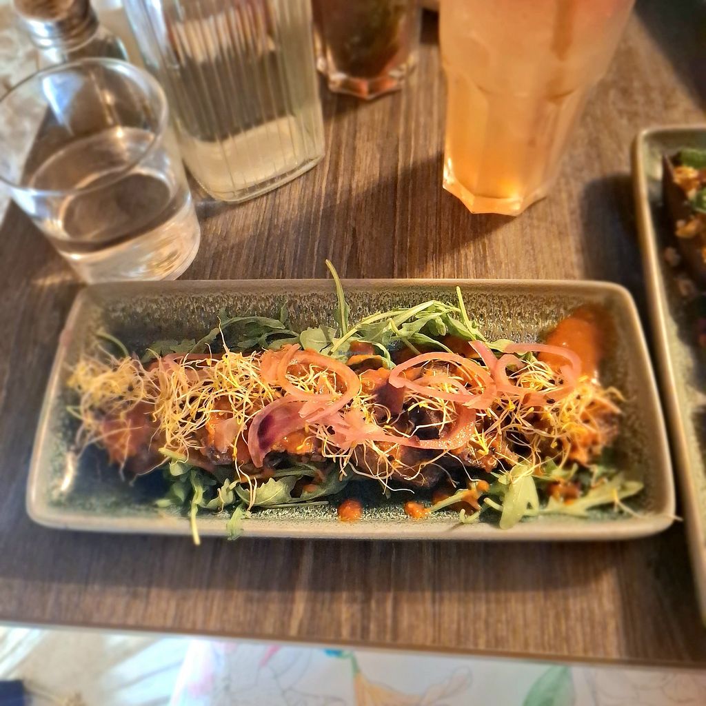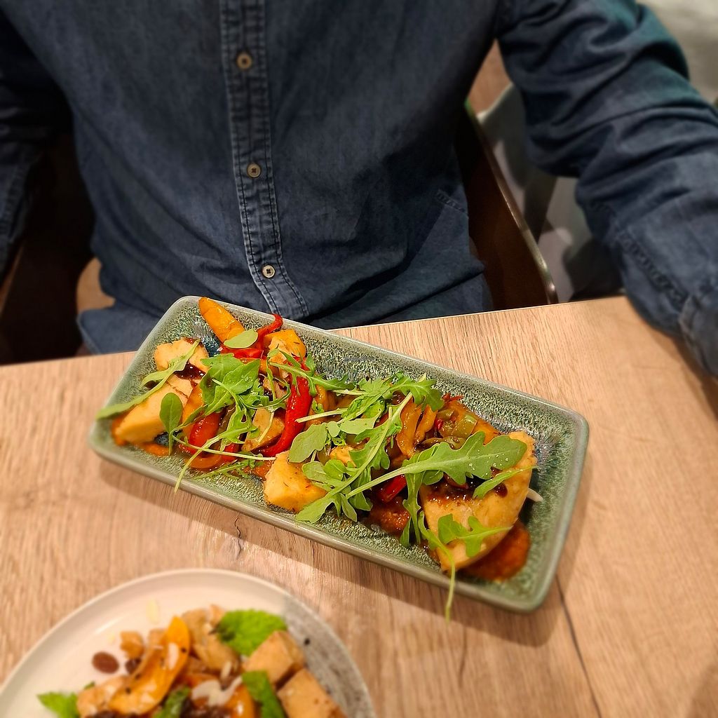 Cons: Food did not arrive at the same time, Could be more vegan options, Small restaurant. Advise booking ahead.