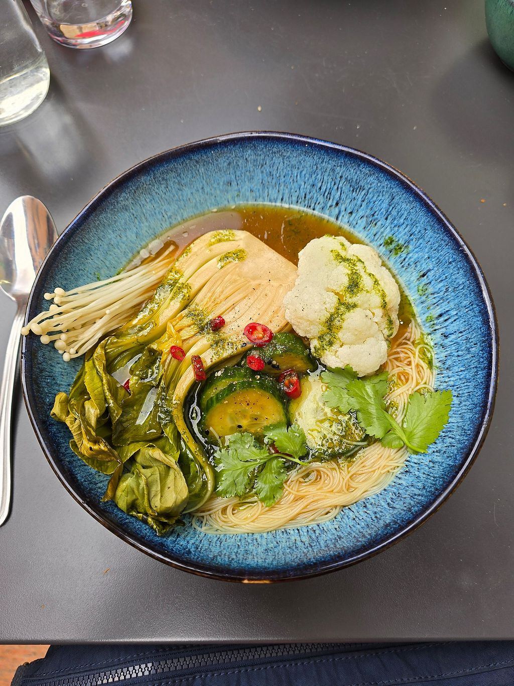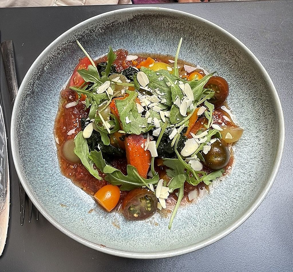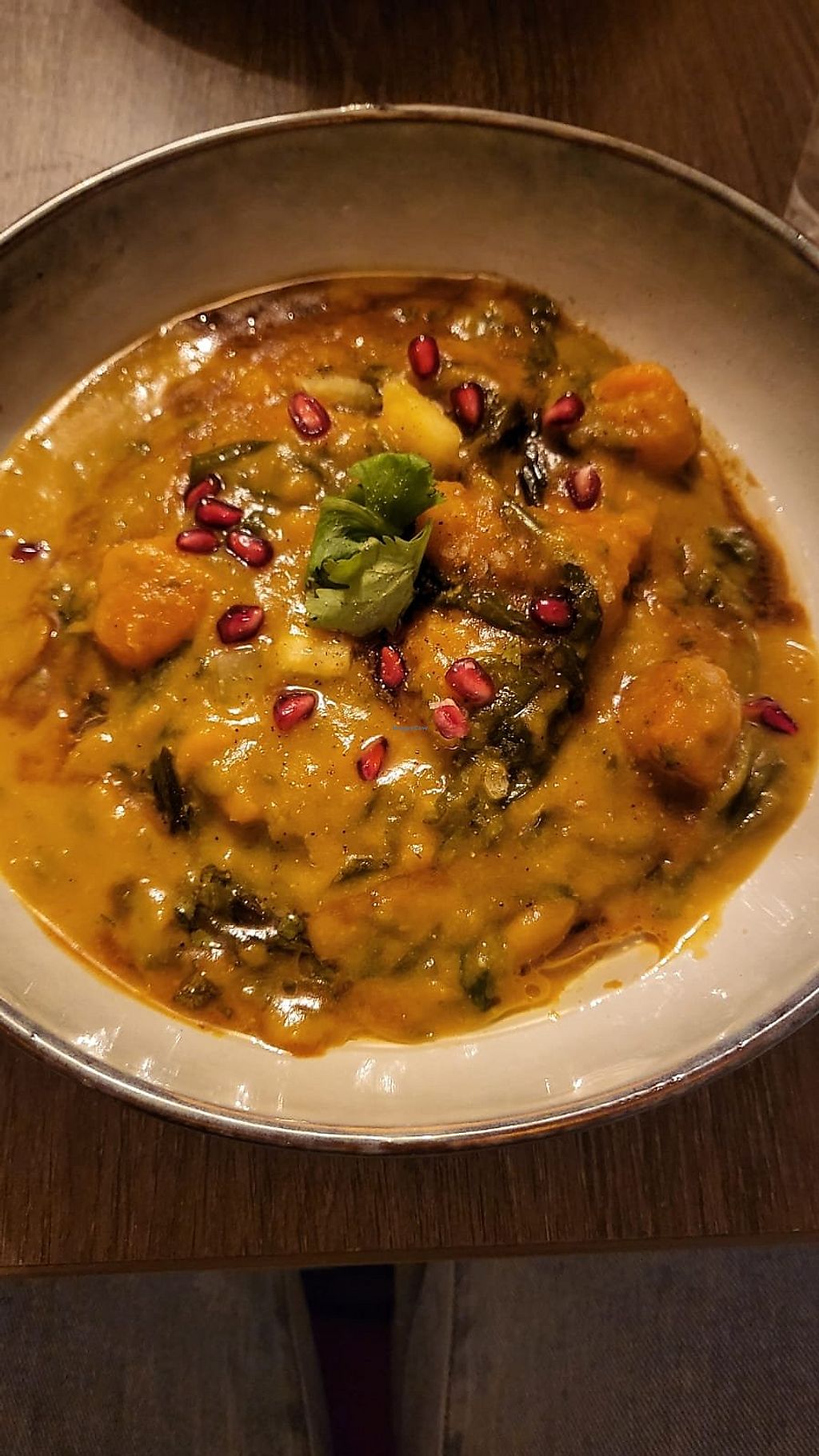 This new vegetarian restaurant offers a nice selection of vegan tapas, likely to change with the seasons. I tried the pumpkin tapas, which were delicious, and the cauliflower fritters, which packed quite a spicy kick. However, the vegetable fritters were far too oily, which was a bit disappointing. My friends opted for the soup of the day, which was vegan and reportedly satisfying. Unfortunately, there aren’t usually any vegan main course options, meaning we had to stick to tapas, which, while tasty and great for sharing, felt a bit limiting. For dessert, I tried the carrot cake, which was also very good. Overall, it was a pleasant experience, the staff were friendly, and the atmosphere was lovely. I just hope to see more vegan options on the menu in the future!