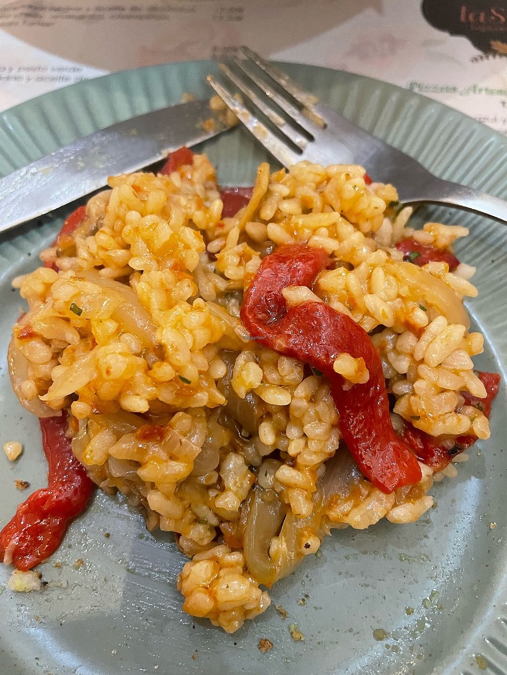 Cons: Que no le pongan queso en el risotto. , No sé si la pizza lleva queso vegano.