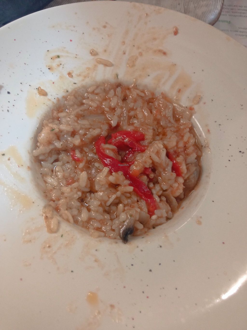 Bruschetta vegana y risotto de verduras sin queso. Todo delicioso. - Edit