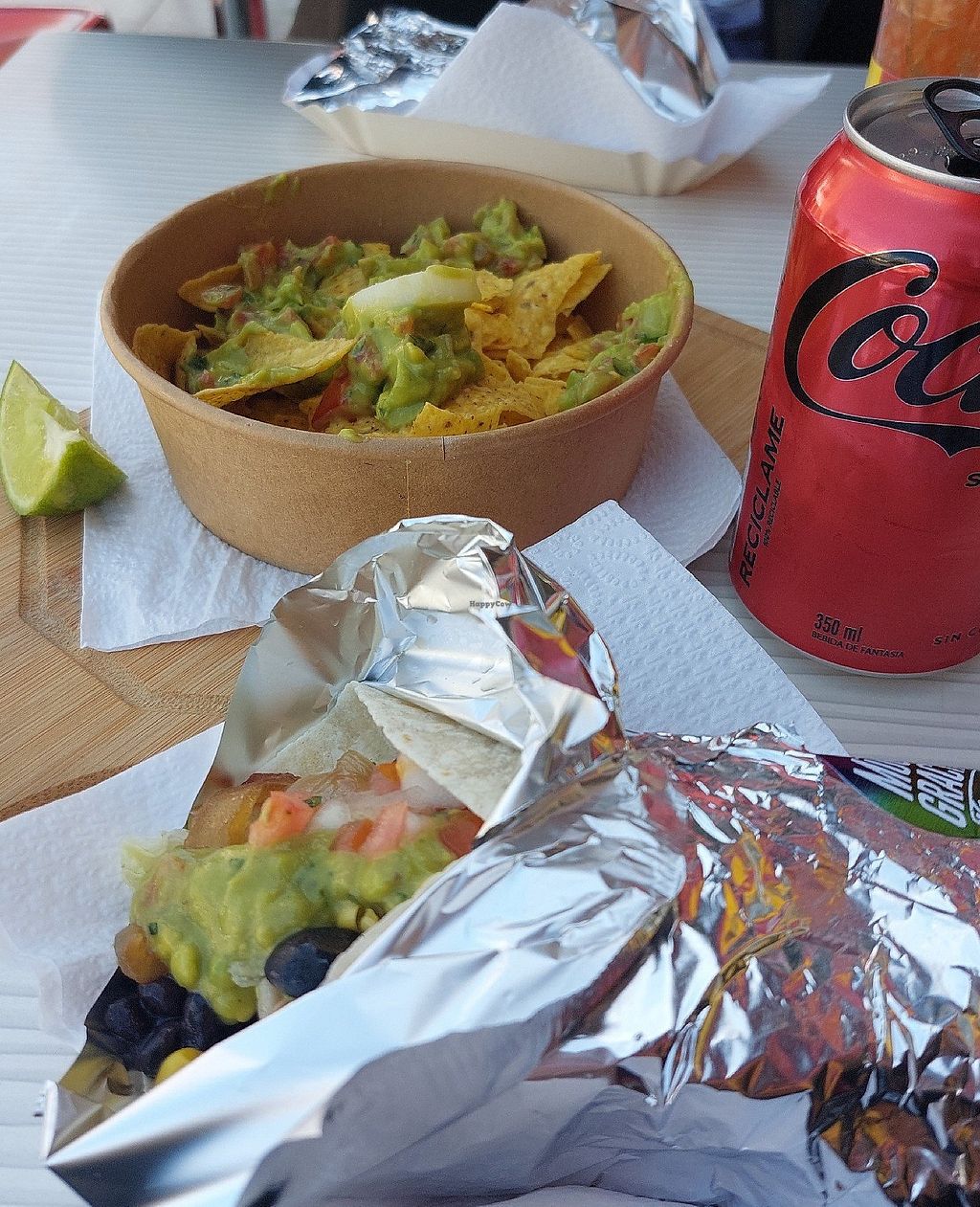 Read moreLas opciones de burrito y tacos tienen bastantes ingredientes y uno mismo elige cuál agregar, por lo que puede ser 100% vegano. No tienen límite de ingredientes y la base es arroz con poroto negro.