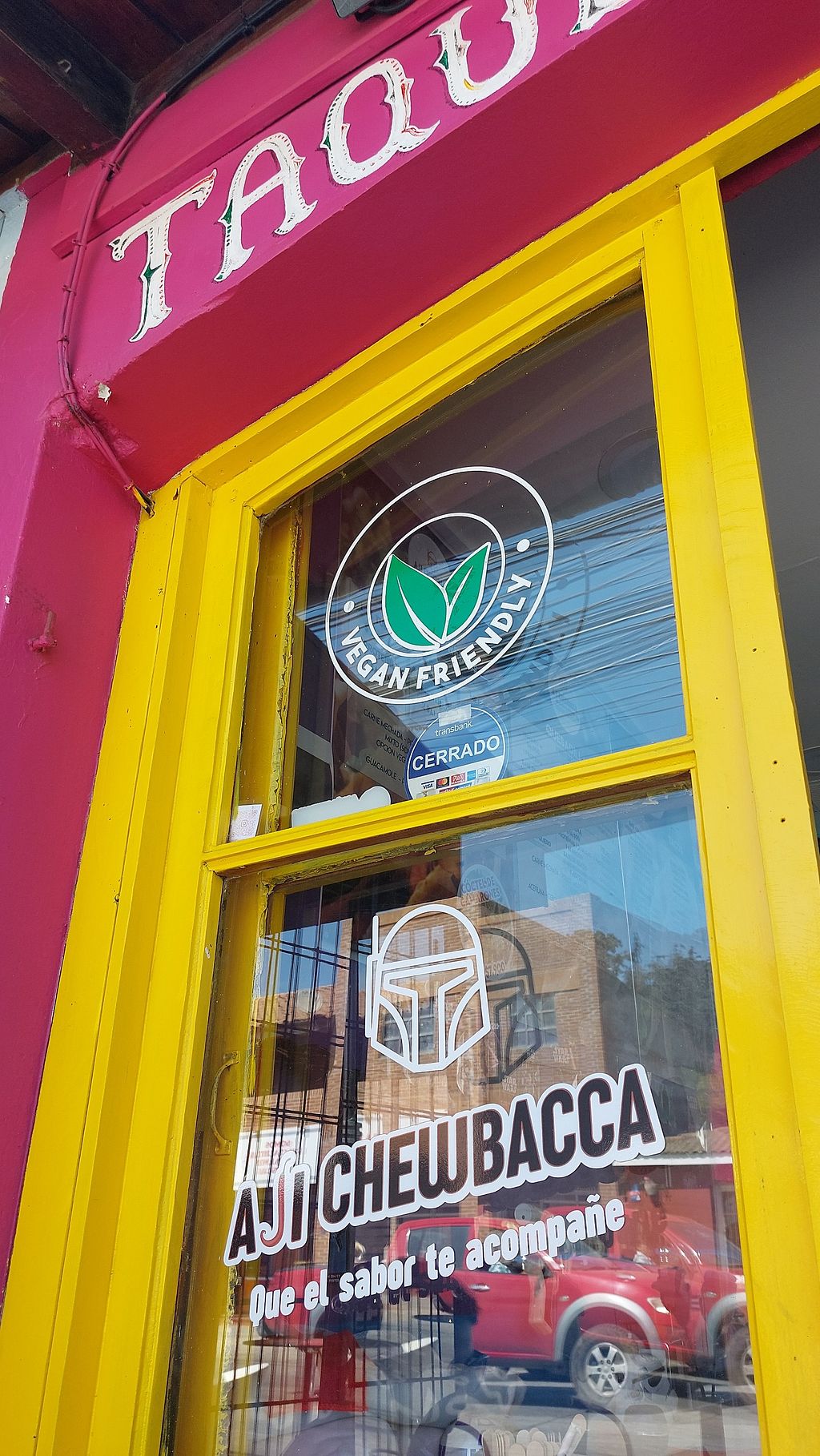Serves meat, vegan options available. Mexican restaurant serving tacos, bowls, nacho, quesadillas and sweets. Vegan choices are made with tofu or vegetable protein and vegan queso. Reported closed March 2024.