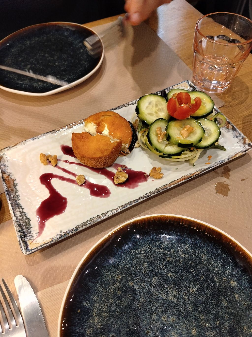 We had lunch here and shared pita bread with hummus, croquettes and patatas bravas. We both had cake for dessert, cheesecake and brownie with ice cream. Tasty food and friendly staff.