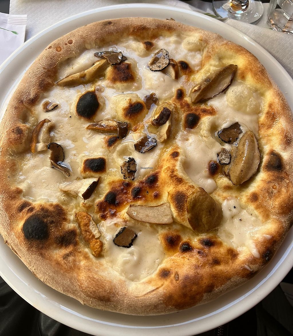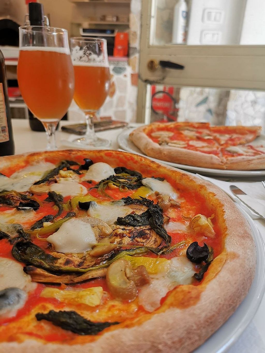 Pizza vegetariana and Pizza porcini (both with vegan Mozzarella)