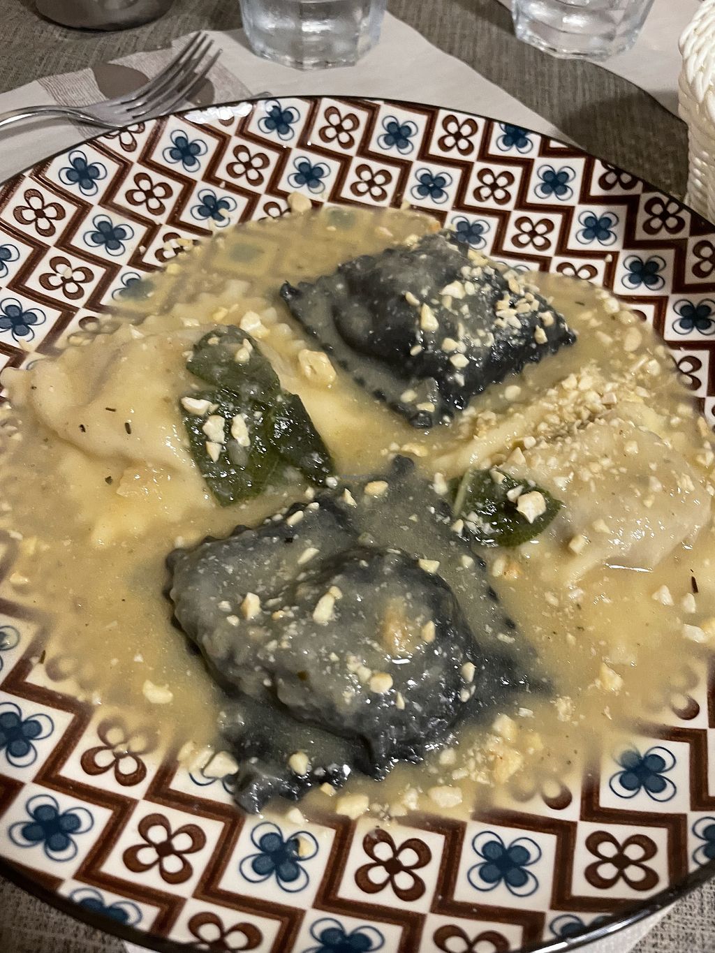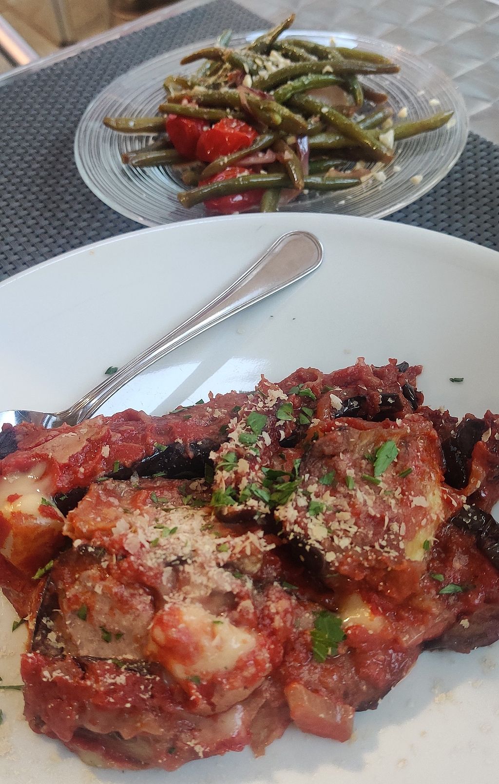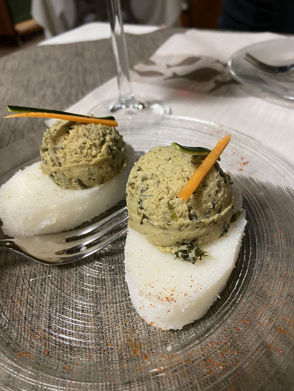 Eggplant Saor appetizer (mushy eggplant with raw onion)