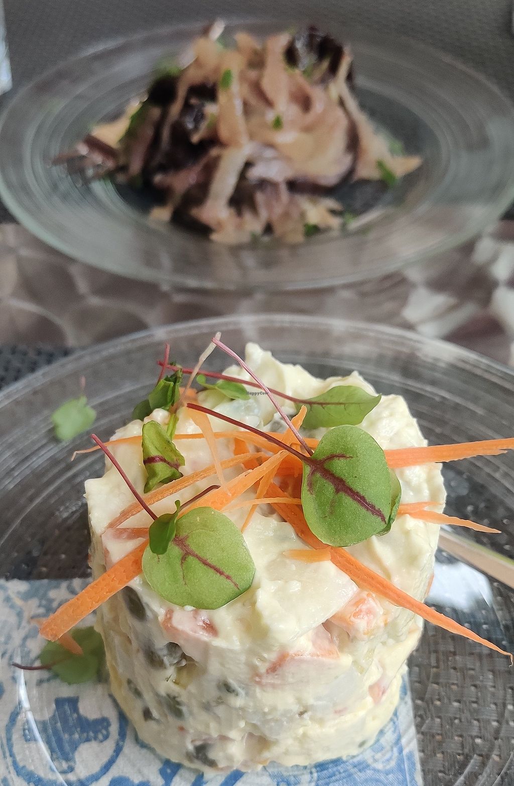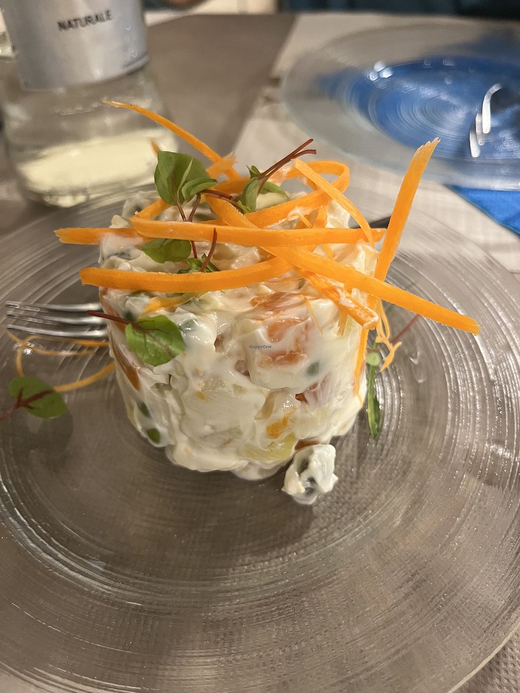Russian Potato Salad appetizer (cold potato salad with peas and capers…