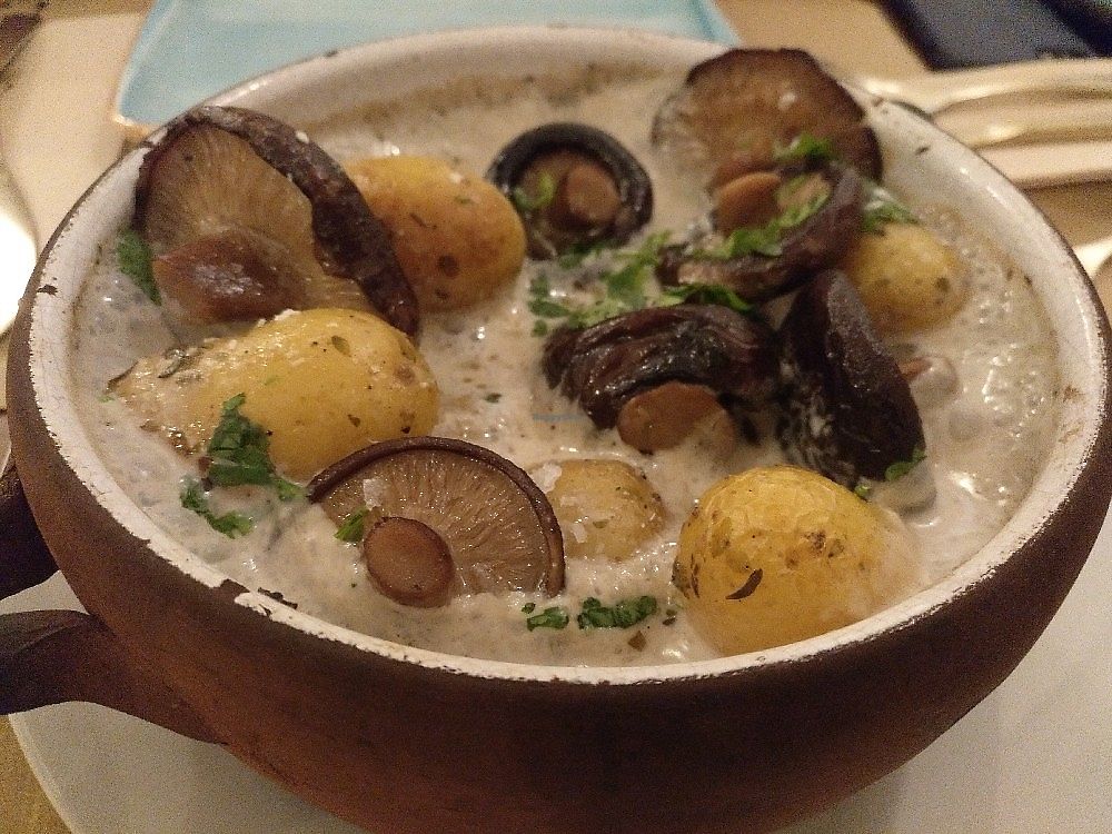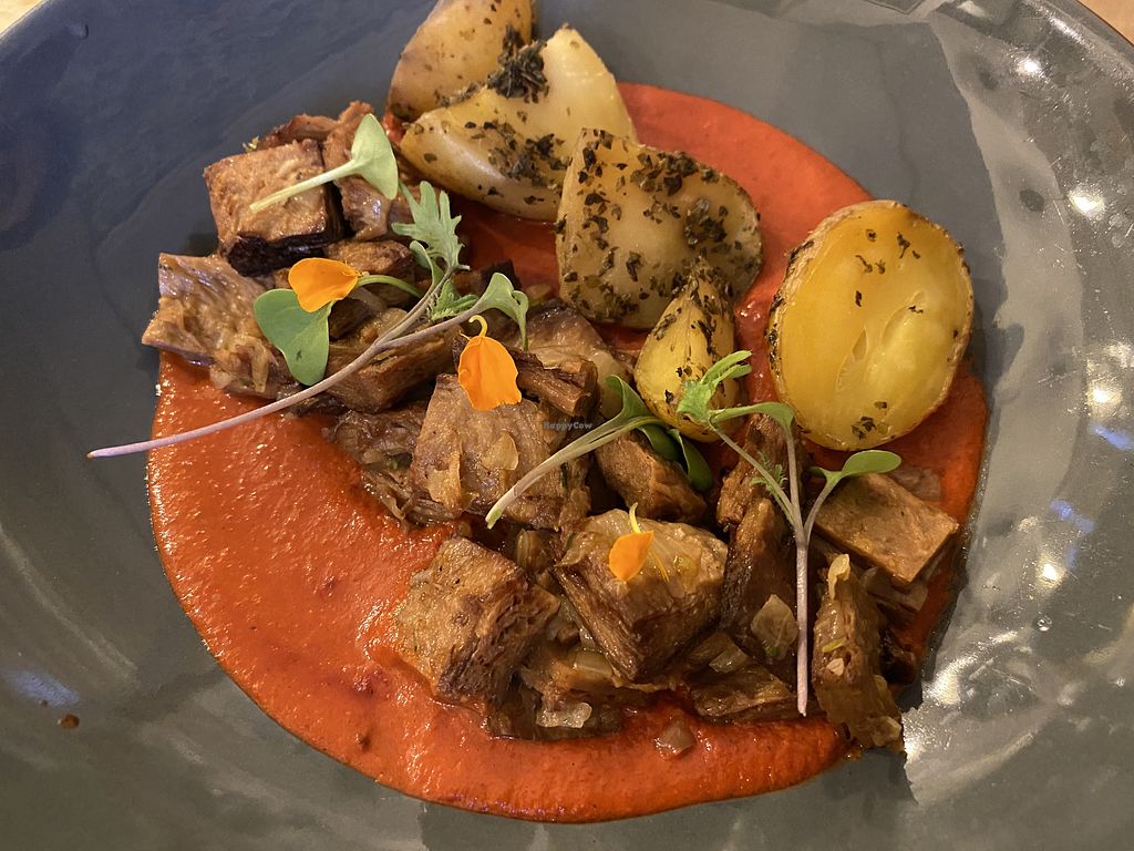 Delicious and slightly spicy (upon request) hot dog with mediocre pota…
