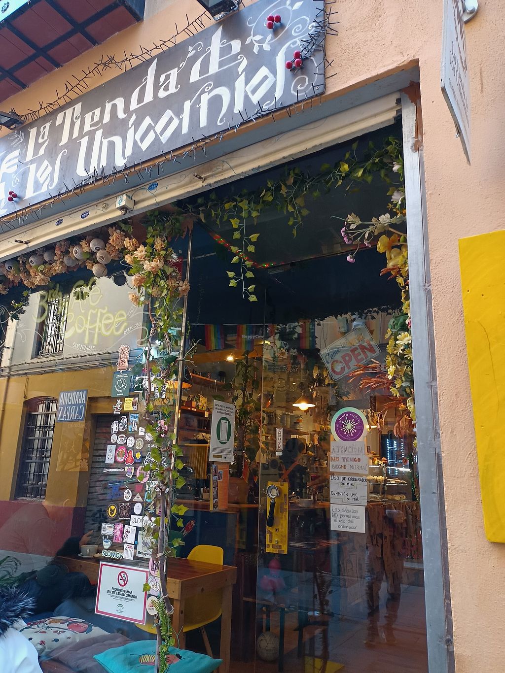 La tienda de los unicorn is a small coffee shop offering breakfast and pastries.