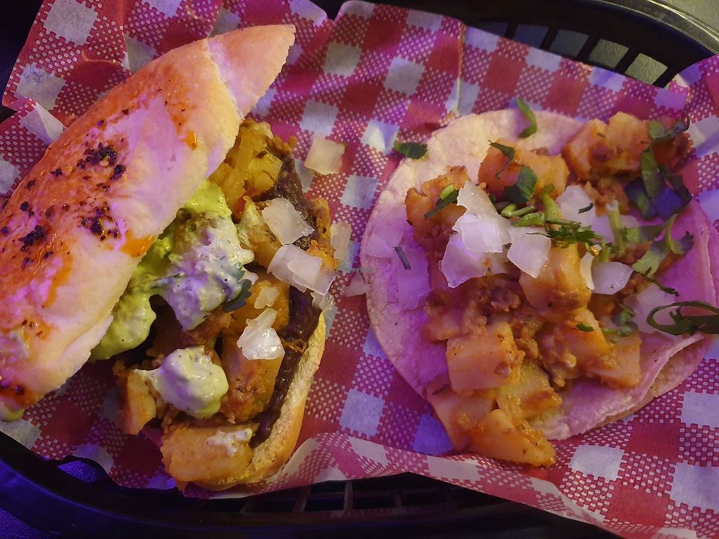 Potato + chorizo taco; and Barbacoa taco - favourites of the night