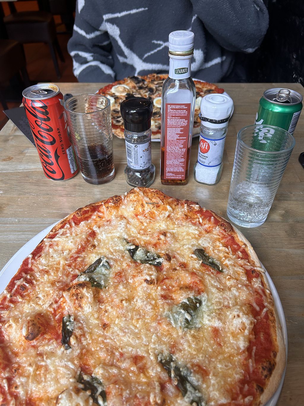 Good pizza's, we had Margarita and Vegetariana, both with vegan cheese. They were quite tasty, staff was friendly and the place itself is enjoyable to sit.