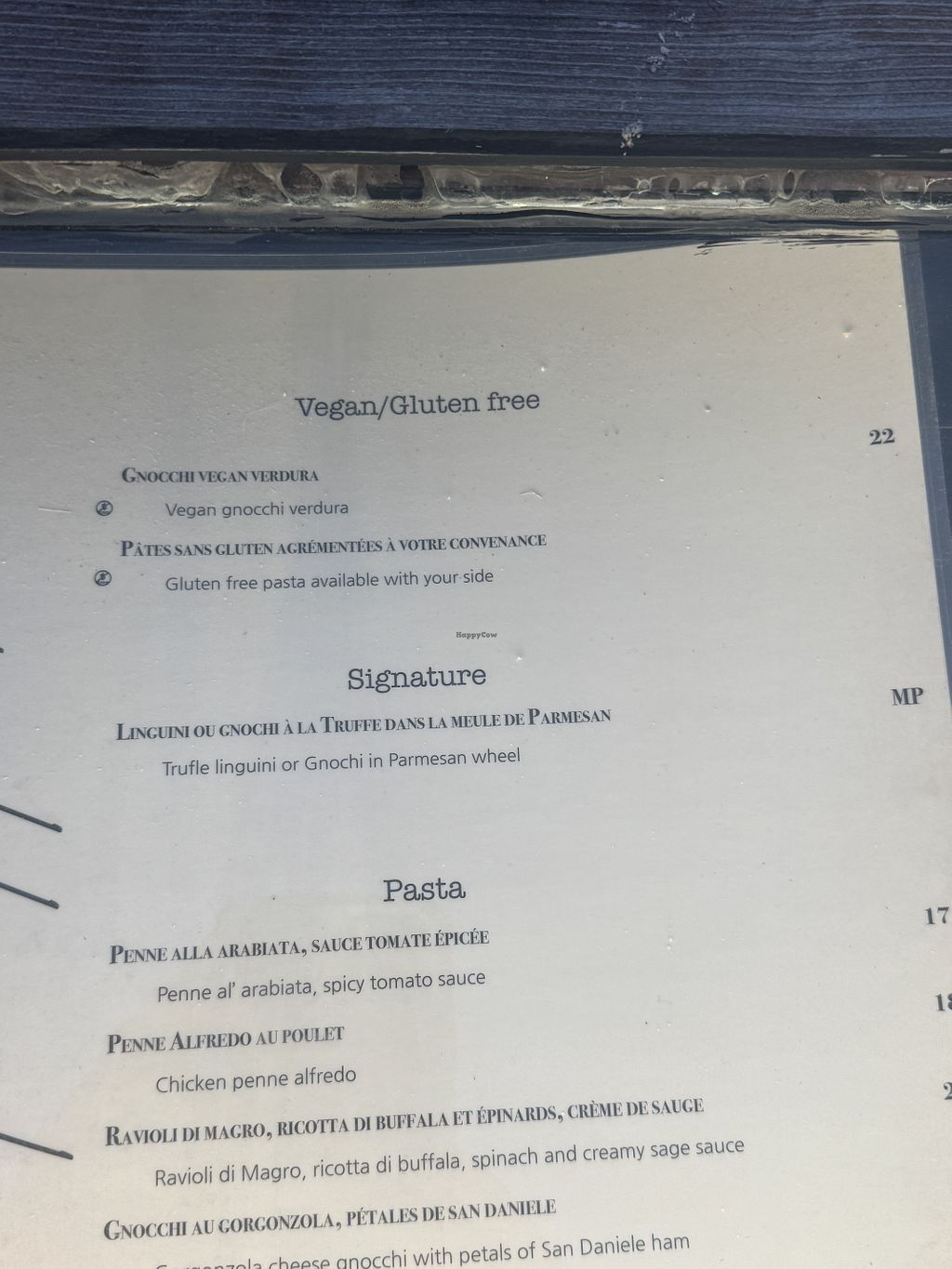 Although there may be only one labeled vegan dish, it was very very delicious! They also brought out lemon sorbet for my birthday & it was great! Pretty restaurant & area! Thankful for the vegan option!