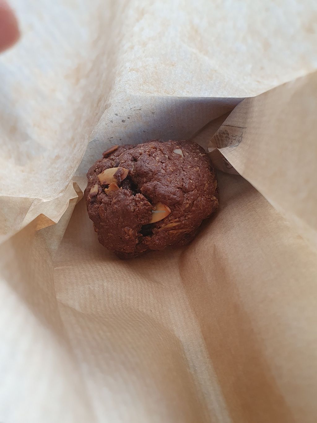 Llegamos a la bakery medio improvisado y nos ha sorprendido para bien. El lugar es chiquito pero acogedor y consta con muchas opciones de galletas y pasteles veganos TODO artesanal, y la verdad es que se nota. Incluso nos comentaron que la leche que sirven, mezcla de soja y coco, la hacen ellos mismos.