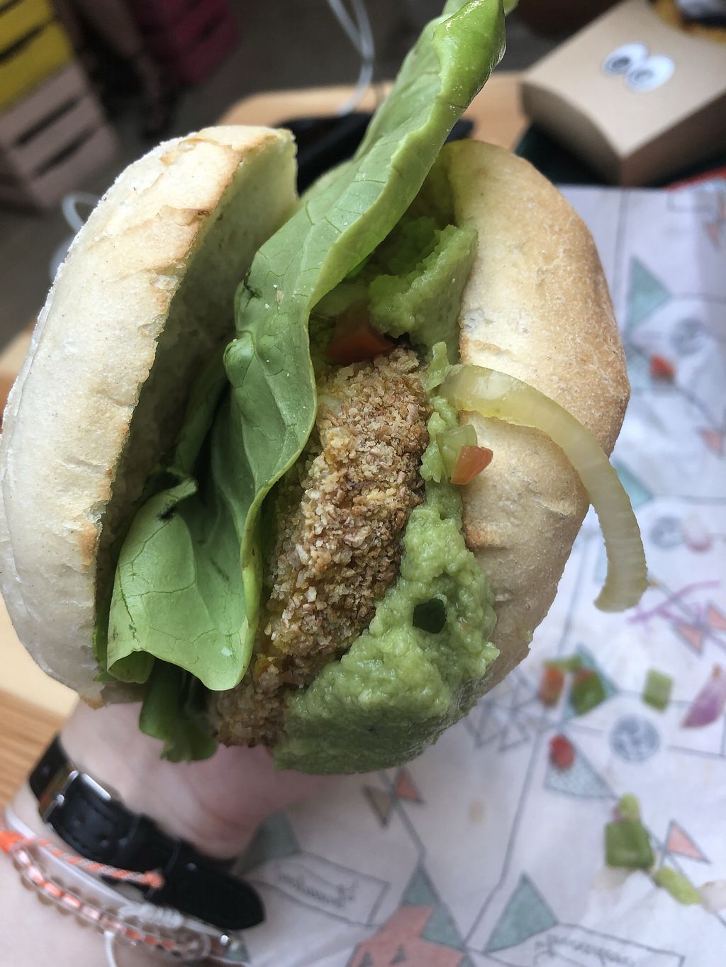 Friendly staff and good location. Food was average. My boyfriends burger was pretty tasty but mine was really dry and definitely overpriced:( I took “chicken” burger and it was 6€. I got just a patty with one lettuce leaf, vegan mayo and a bit red onion. My boyfriend had many different ingredients and lot of sauce and it was way way bigger than mine with the same price. Not consistent. Wouldn’t come back.