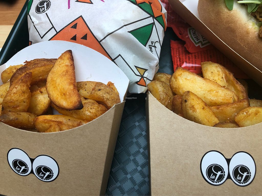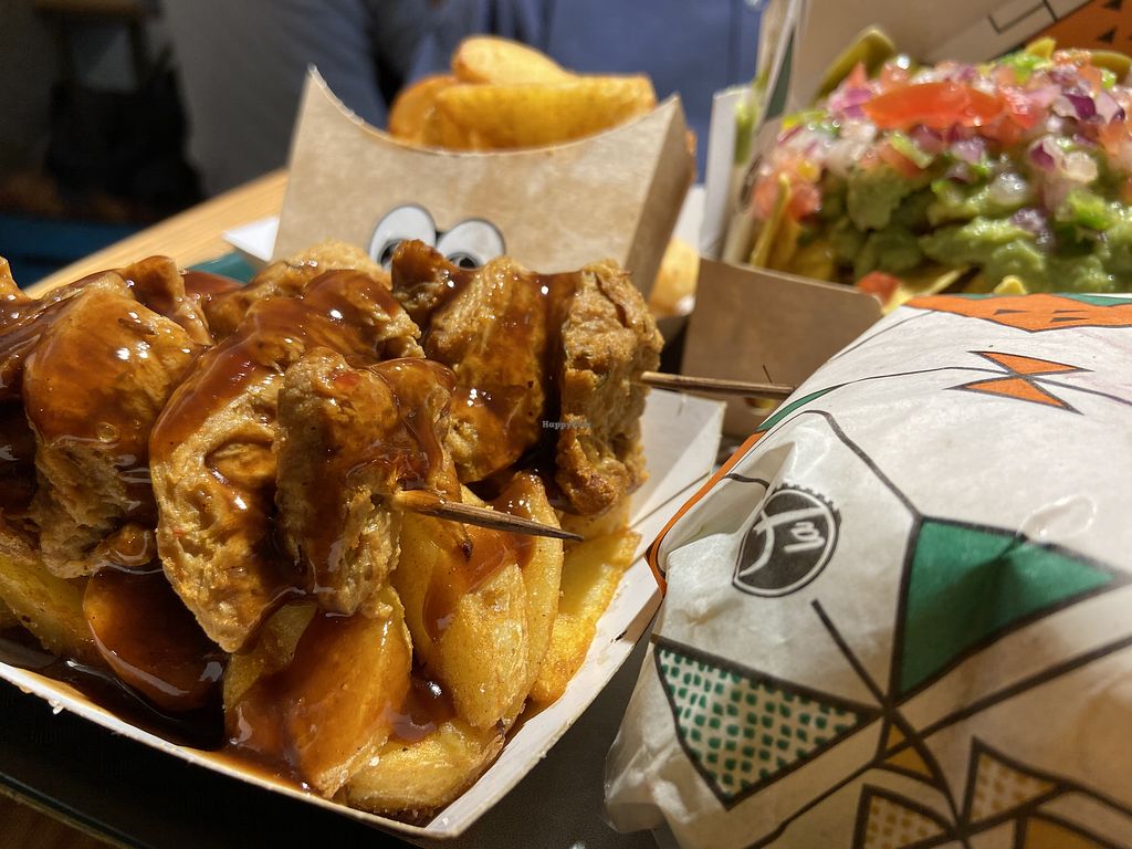 Amazing 100% vegan place, the food is delicious! They have many options for burgers and hot dogs, besides nachos con guacamole, hummus and yummy vegan sweets. Highly recommended! The only bad thing is the use of plastic (for the drinks, the hummus...), I'm sure it would be easy to find an alternative and it would make the place even better!