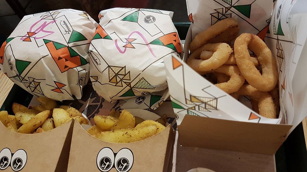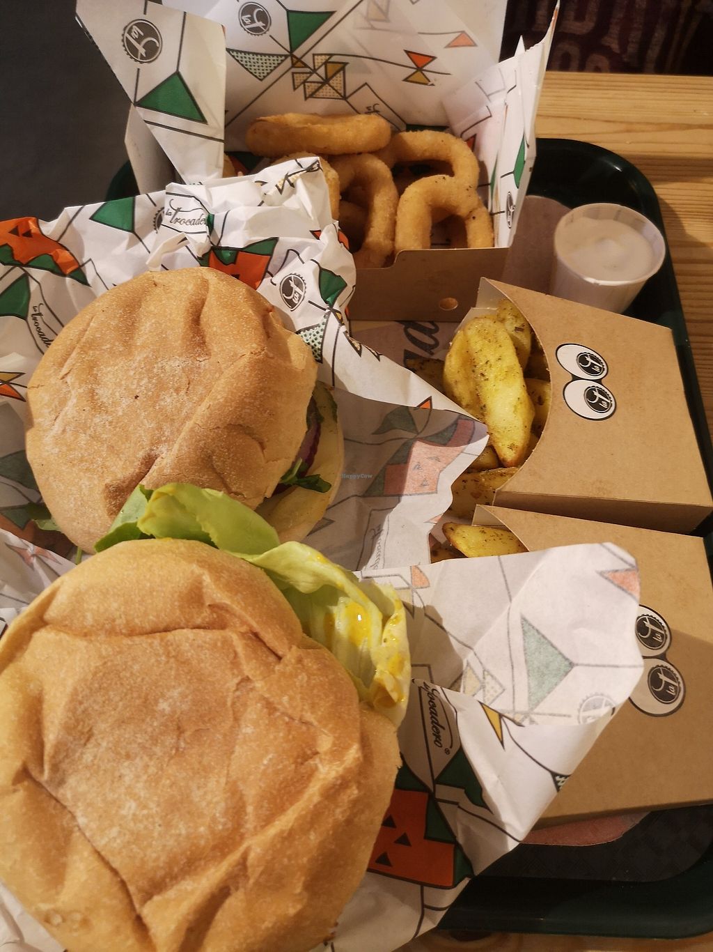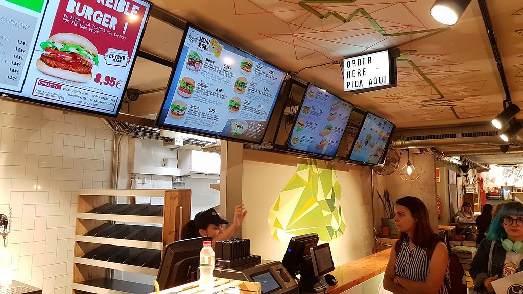 Fully vegan menu, loads of different burgers and a bunch of sides like nuggets, fries and so on. I had a beyond burger with vegan cheese, vegan bacon, jalapenos, mayonnaise, caramellized onions and a bunch of other tasty stuff. Really cozy seating area and really tasty food!