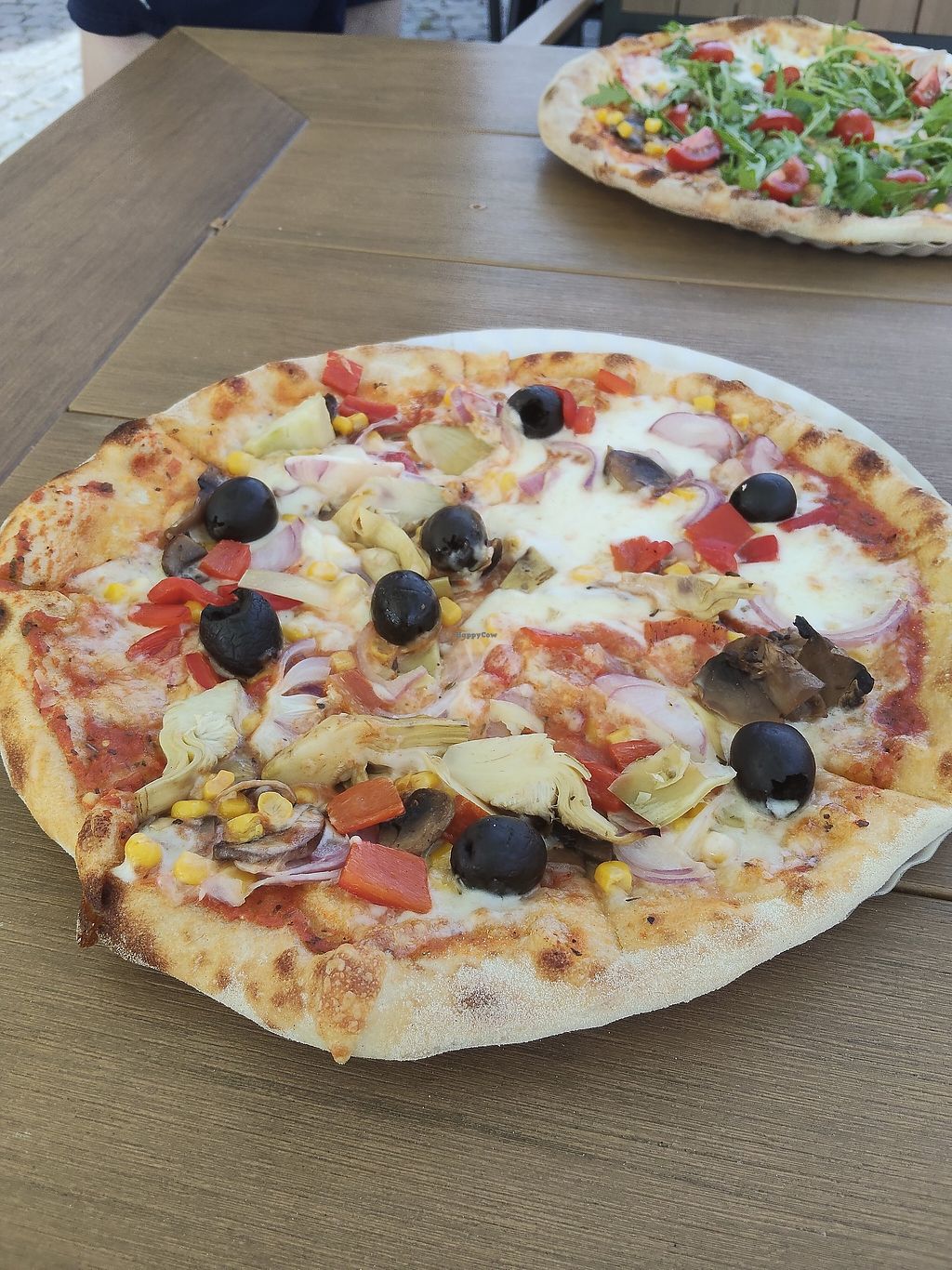 The pizza (vegetarian, not vegan) was okay, pretty big. The waiters seemed confused.