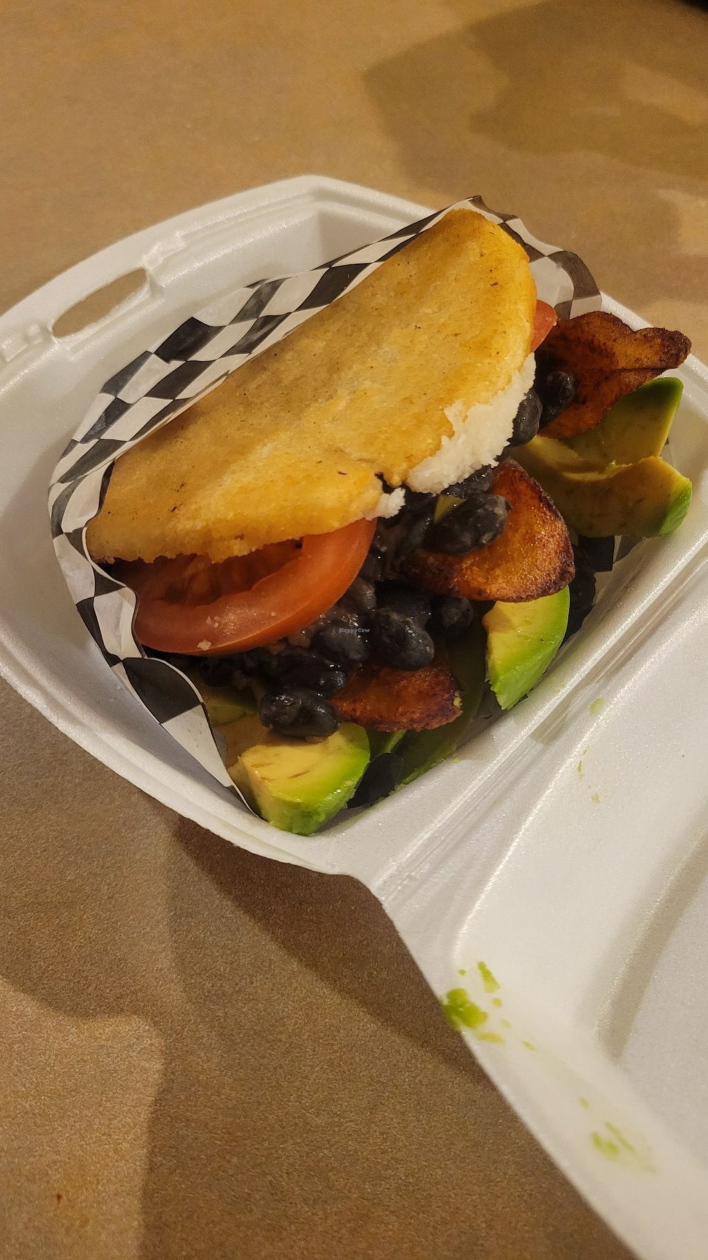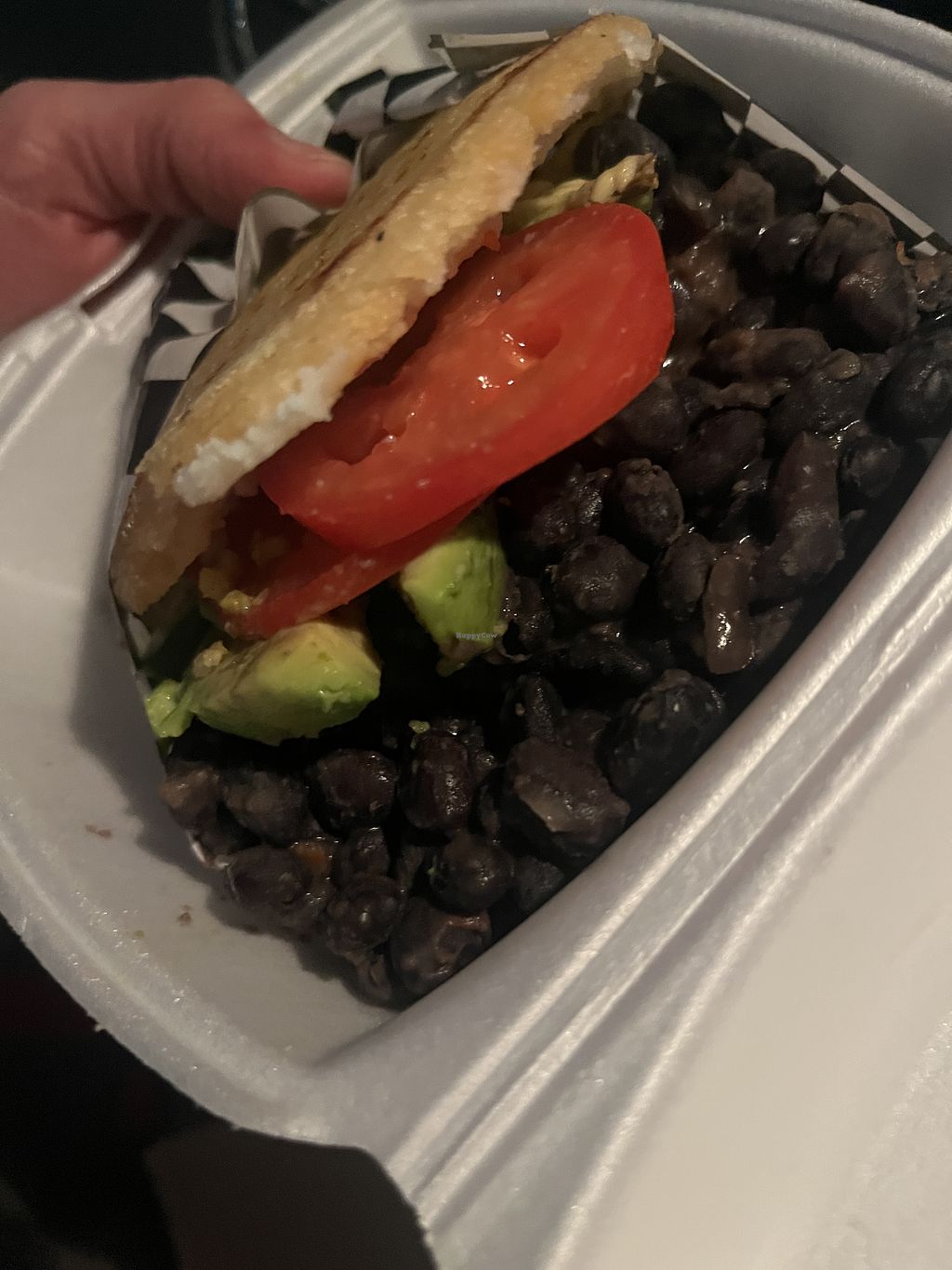 I had a veggie arepa with black beans, tomato, and avocado. To have it this way, you'd have to ask for it without cheese because it originally comes with it.