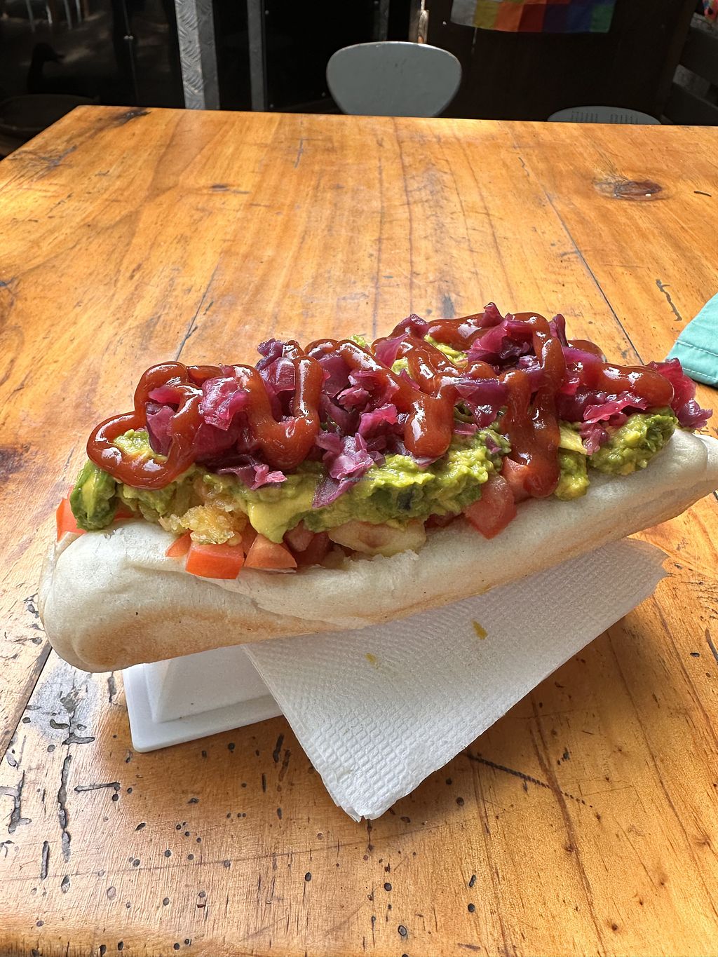 Chorrillana Morenada, salsa de queso, seitán y cebollín