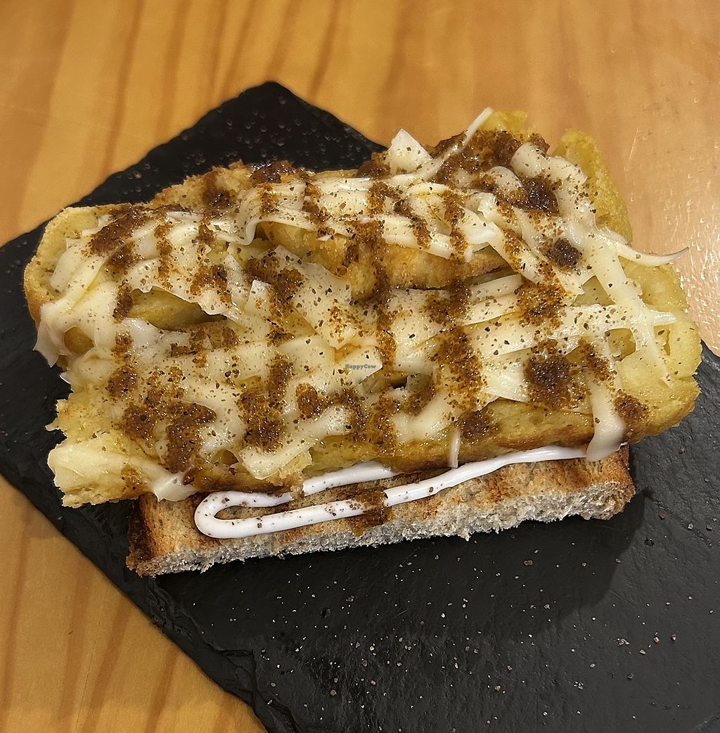 Read moreI had been excited to try vegan versions of the tapas I had enjoyed as a vegetarian. Unfortunately the taste here was off for me, being too greasy and oily. There is not much seating and what is there is uncomfortable, being high tables and stools. The staff was not friendly and did not explain that it was a QR code menu until we went up to the counter to ask.