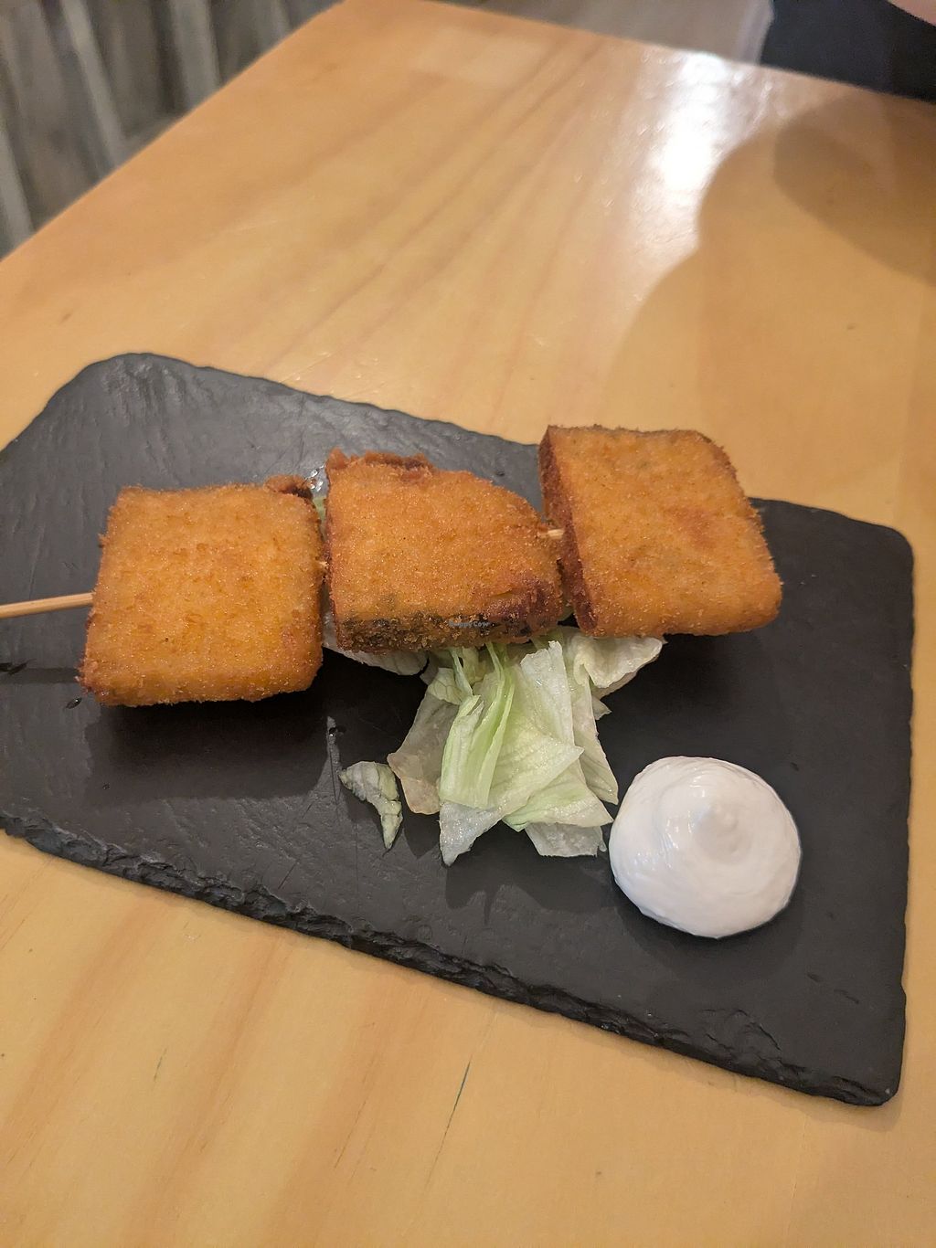 I was very satisfied with everything I tried, especially with everything that includes vegan cheese. That (v)cheese was a revelation, and I still dream about it to this day! Many of the tapas were very greasy and heavy because they are fried, but still very good. The staff was very friendly and helpful. For me, the restaurant itself is not very cosy and the seating is not that comfortable.