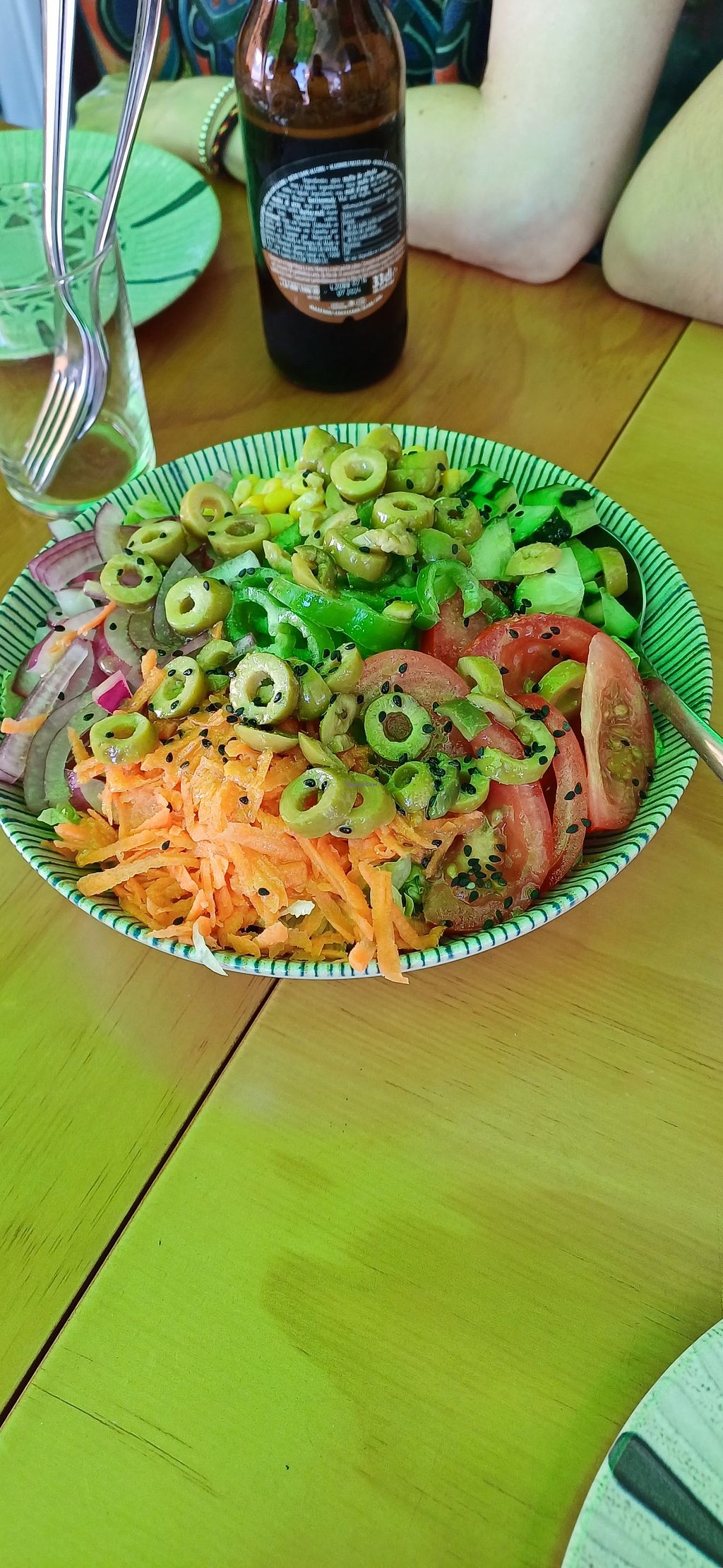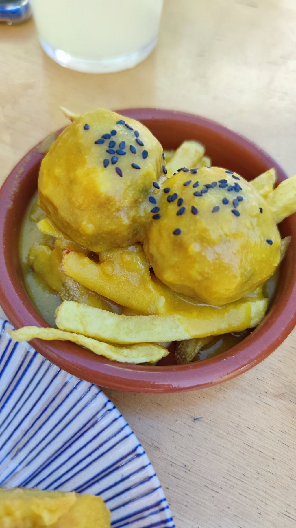 El lugar junto al paseo marítimo, su terraza pequeña pero bien distribuida y tranquila, el sol, el ambiente, el personal muy muy atento .... Y la comida.... Toda riquísima, comida de la que se echa de menos cuando te haces vegana, ensaladilla rusa, croquetas, albóndigas..... Y como guinda del pastel el postre. Tenéis que probarlo, seáis o no veganos la comida está de 10.