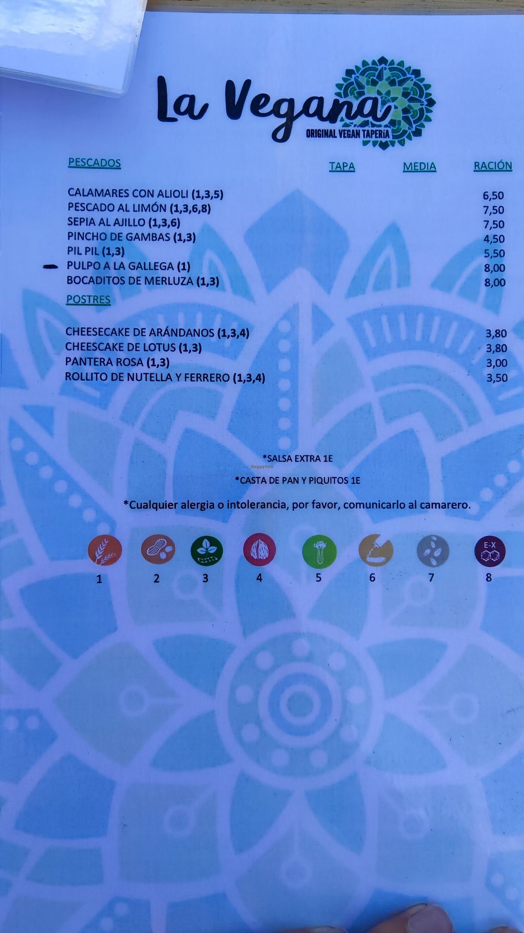 Tienen muchas opciones, pulpo, merluza, sepia, calamares, hasta postres. todo estaba muy bueno y era muy económico y sin necesidad de ningún tipo de sufrimiento animal, recomendadísimo!!!!
