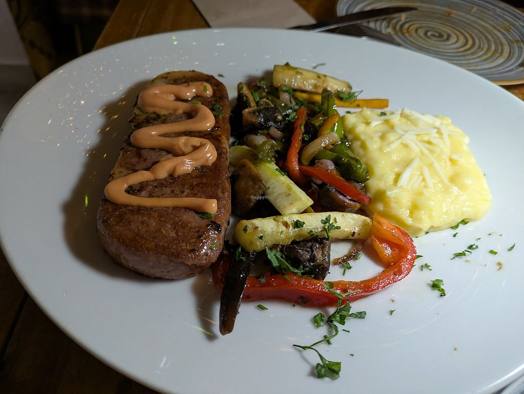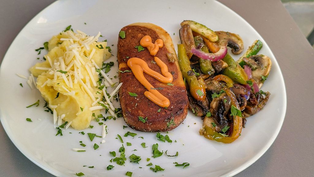 Read moreI had a great meal. I ordered the Seitan meatloaf with vegetables, followed by cashew cake and a cappucino with oat milk.