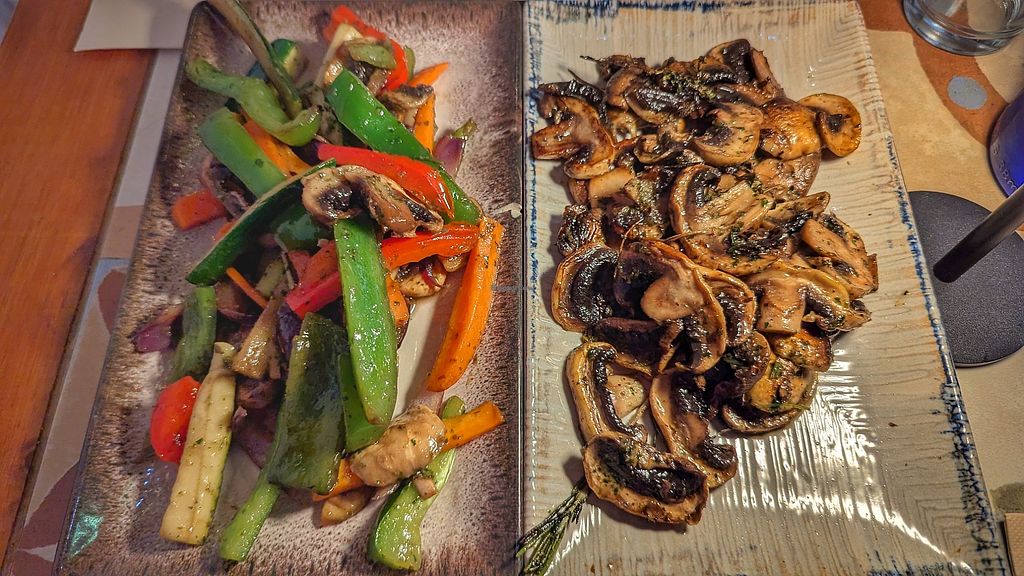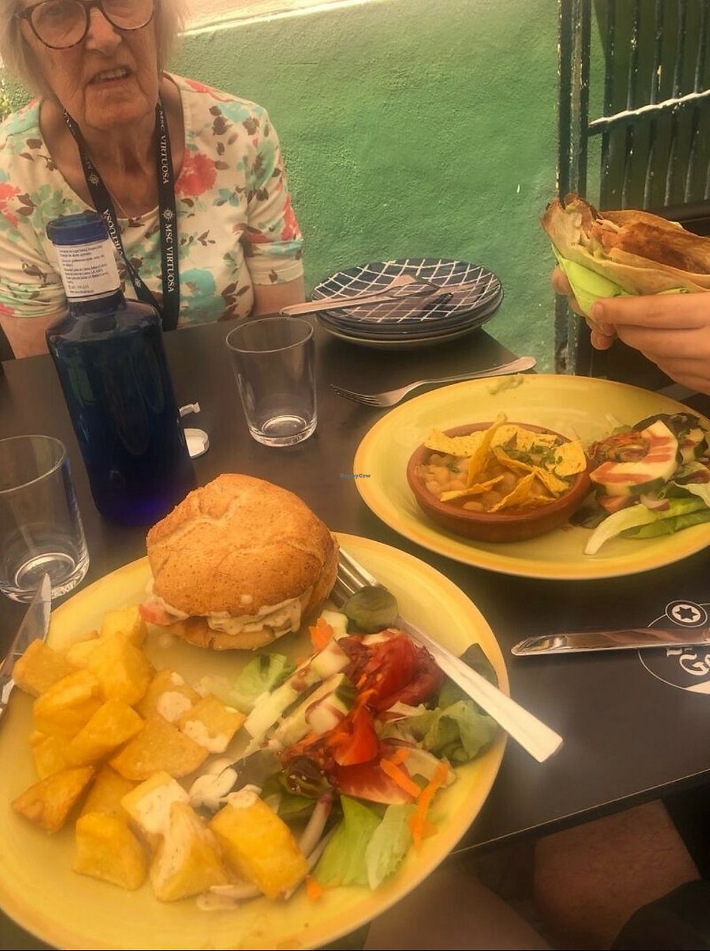 Unfortunately Veganesa did not open until 8.30pm and then the service was slow to get going even though we were the only ones there for a while, it filled up with mainly locals as the evening went on. The menu was difficult to understand as it was not the usual vegan fare. So ordered slightly blind, when it arrived it was a sort of patty with roasted vegetables, which were rather oily. My husband opted for a burger. I had a small jug of Sangria, which was very good. It was a Saturday evening and there also appeared to be only 2 staff.