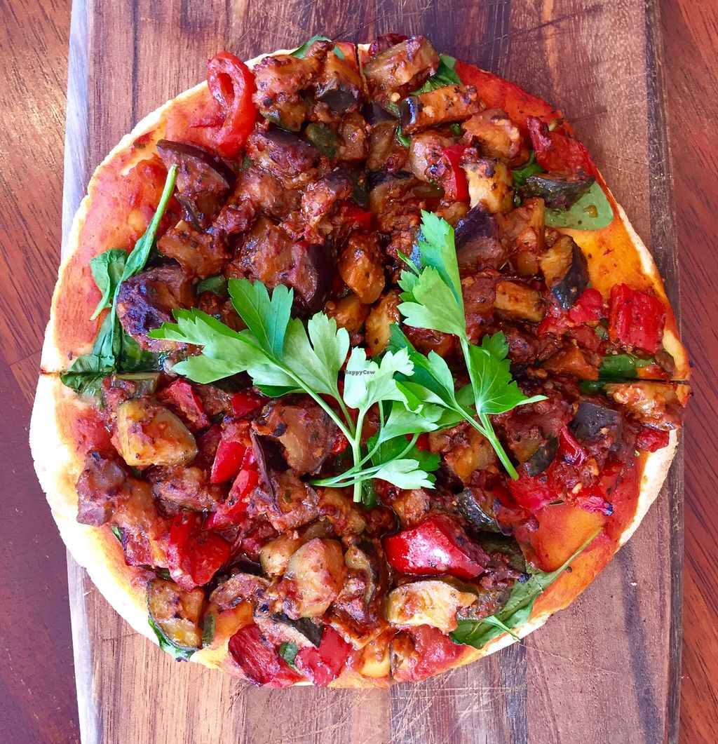 vegan pizza: napolitana, spinach & Mediterranean vegetables